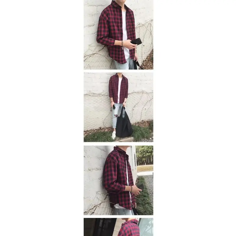 PlaidShirtMen'sLongSleeveLoose-fitKoreanTrendyBrandStudentAutumnFlannelJacketTopMenswear