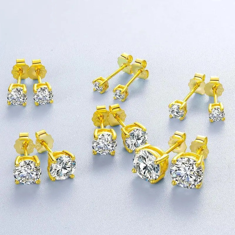 PAVOI 14K Gold Plated Sterling Silver Cubic Zirconia Stud Earrings for Women - Simulated Diamond CZ Earrings