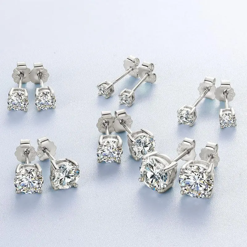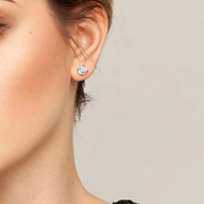 [001-1CT] Sparkling Synthetic Moissanite Stud Earring Classic Four-claw Sterling 925 Silver Jewelry Stud Earrings Elegant Luxury Style Delicate Gift