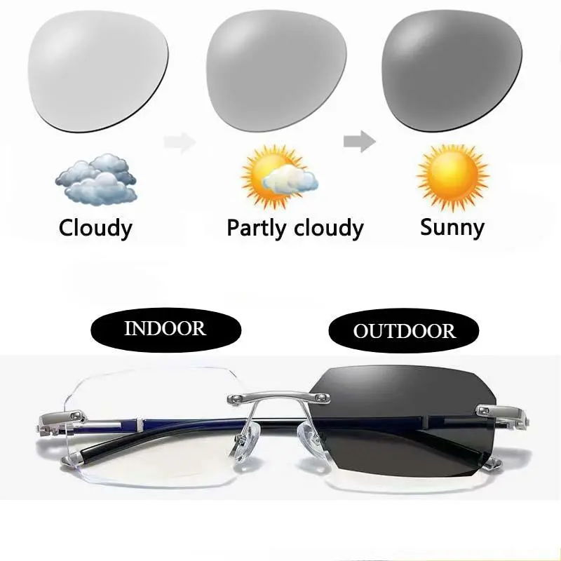 1PairTR90Luxury-CutPhotochromicReadingGlasses+2.50Strength,RimlessBusinessEyewearforMen&Women,PresbyopiaCorrection,LightweightDurableTR90Frame,GlamorousStyle,+500Enhancement(Reading&ComputerUse),VersatileVisionAid,Sophis