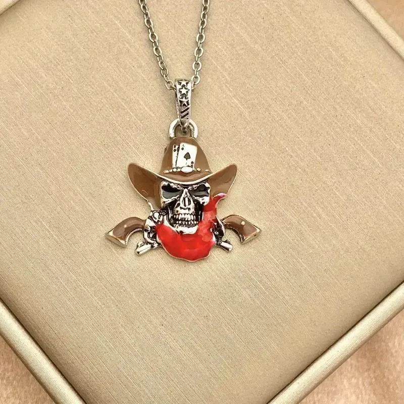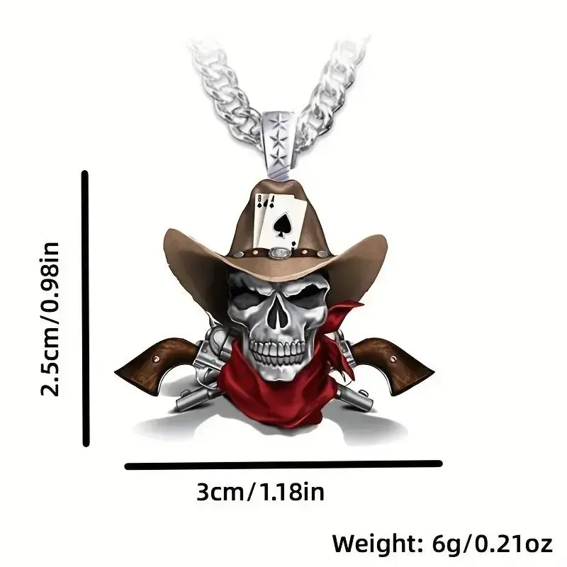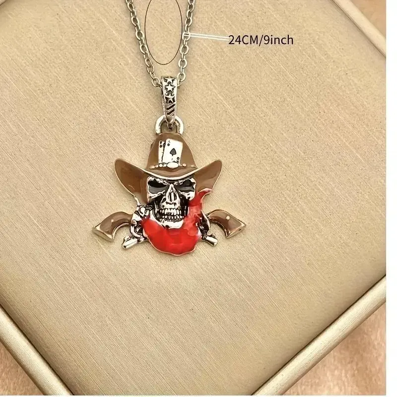 Stainless Steel Gothic Skull Necklace for Men Add a touch of classic charm to your accessory collection with this stunning stainless steel necklace featuring a punk western cowboy pendant. Perfect for any occasion, this piece is a versatile addition to your jewelry collection. Embrace the spirit of the wild with this eye-catching piece that combines style and personality.