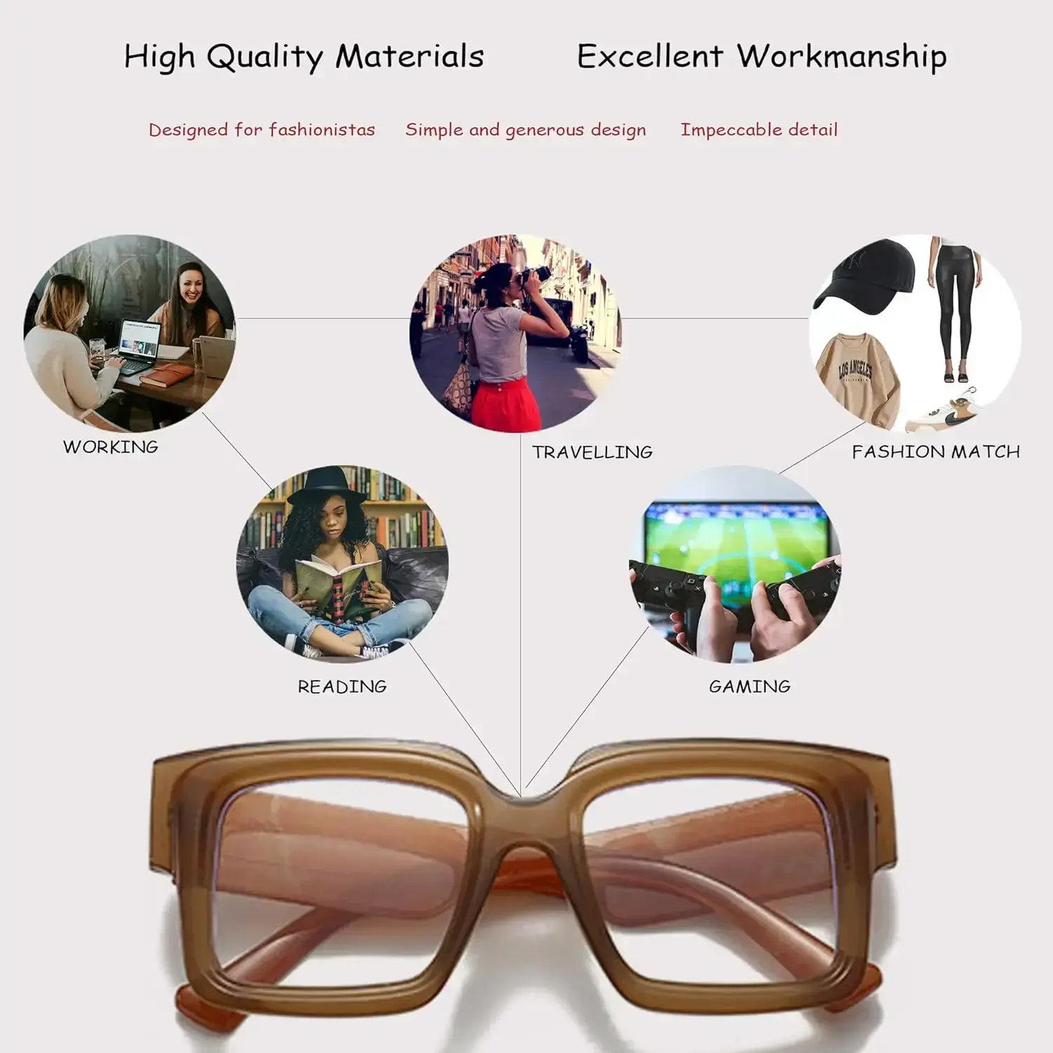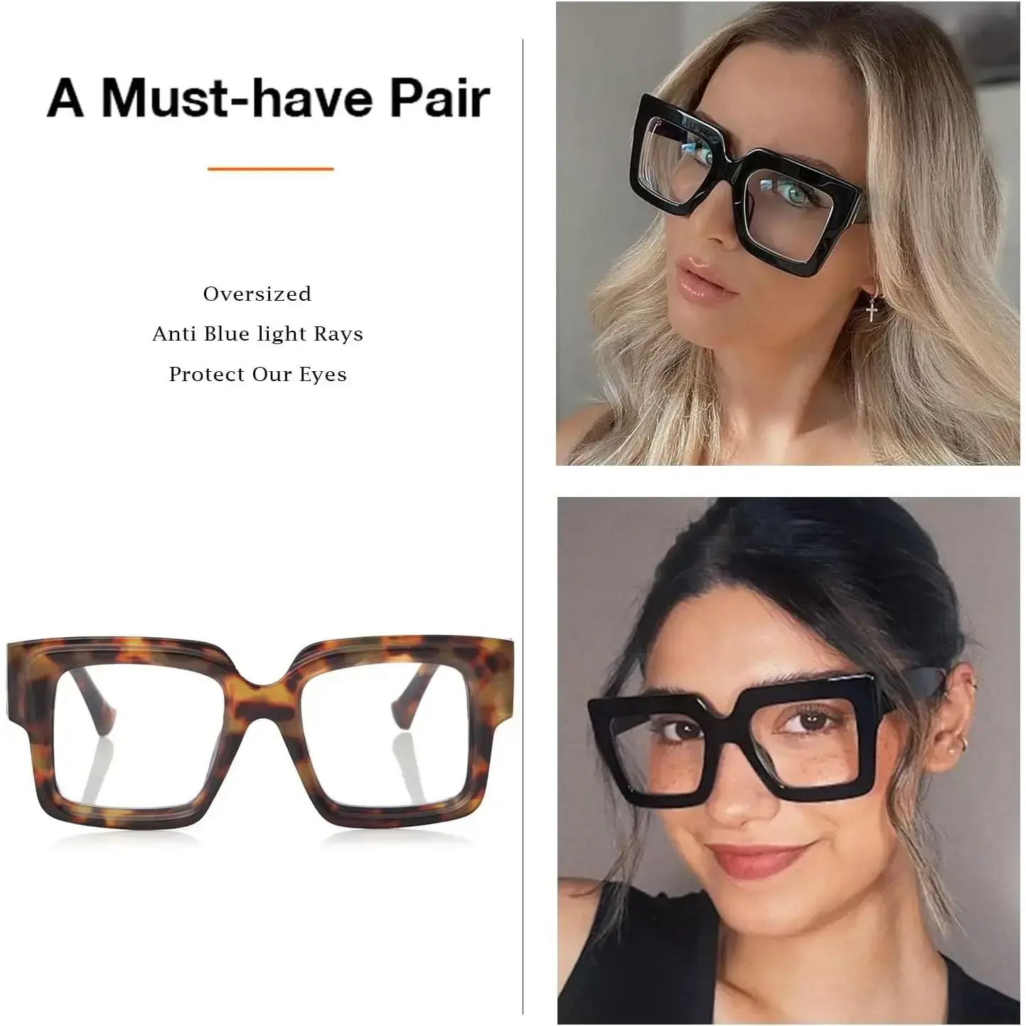 Square Blue Light Glasses for Women Men Chunky Big Frame Computer Eye Glasses Non-Prescription Eyewear