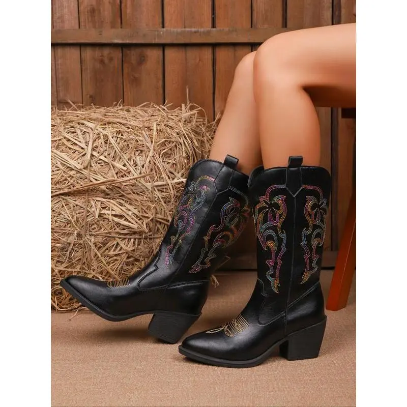 New Embroidered Short Cowboy Boots for Women, Fashion Western Style Shoes, Unique Stitching Design, Casual Wear Trendy Boots