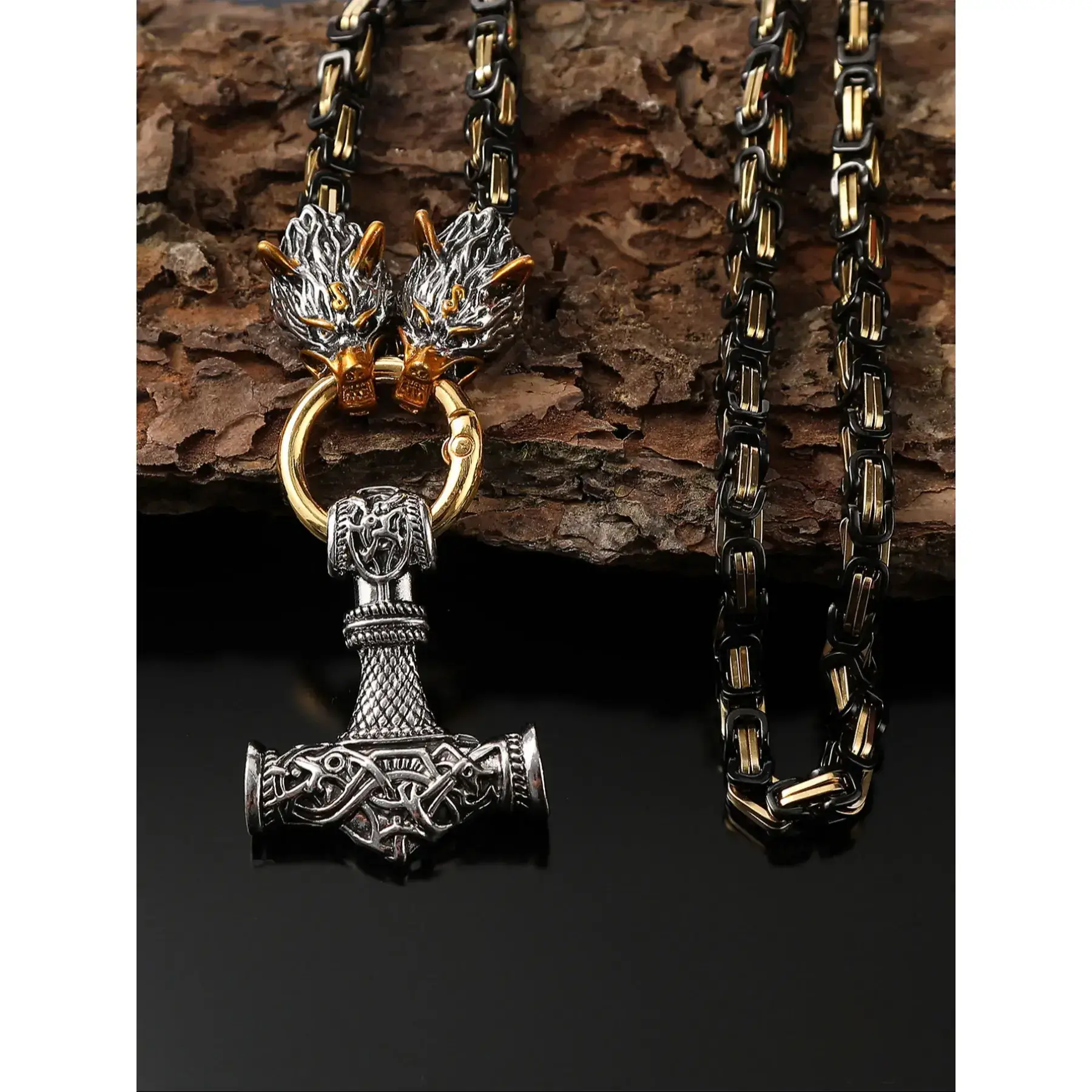 Silver wolf head+gold new hammer pendant