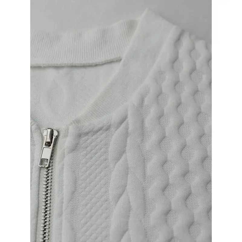 Casual Zipper Jacket with Textured Jacquard Fabric, Stylish and Practical Everyday Outerwear, Perfect Layering Piece for All Seasons