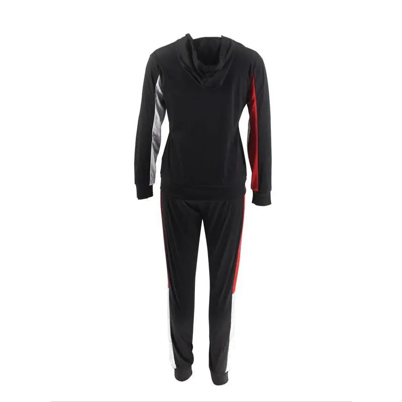 【Modern Color Blocks】: Featuring a contemporary color-block design, this outfit adds a dynamic visual element, distinguishing it from standard activewear options. 【Fitted Silhouette】: The fitted cut enhances your figure, providing a sleek look that's appealing while allowing freedom of movement during various activities. 【Quality Knit Fabric】: Crafted from moderate thickness knit fabric, this set guarantees durability and is suitable for warmer spring weather while ensuring breathability. 【Convenient Hood】: Equipped with a practical hood, this two-piece set offers additional protection against light elements, enhancing usability during outdoor activities. 【Spring Season Ready】: Designed specifically for the spring season, it's perfect for transitional weather, balancing lightness and warmth effectively.