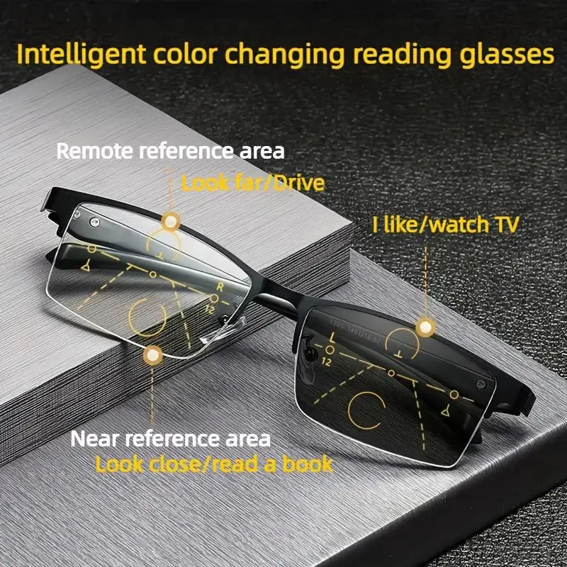 Elegant TR90 Photochromic Progressive Multifocal Glasses with Intelligent Color Changing, Anti-Blue Light, Auto Zoom for Men and Women Bifocals
