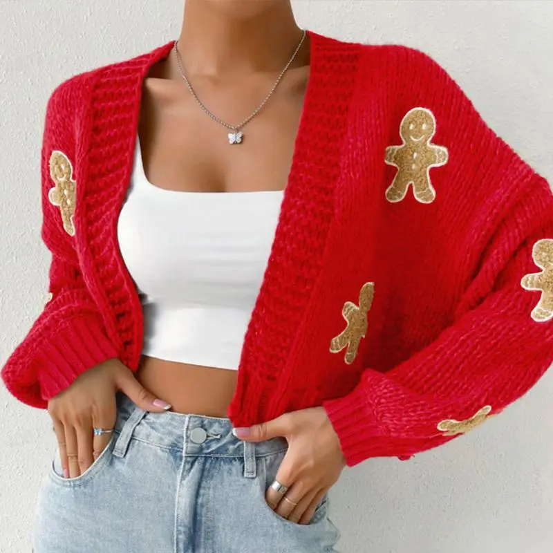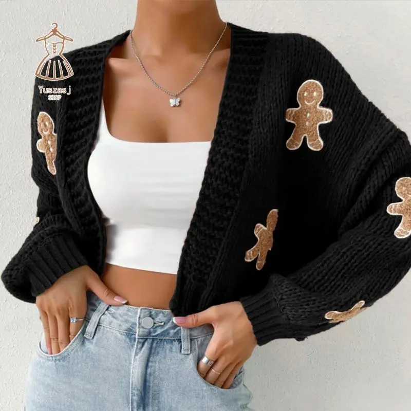 Women'scuteautumnandwinterfestiveatmospheregingerbreadmanpatternknittedcardigan,warmandfashionableFitKnitwear