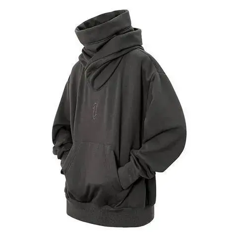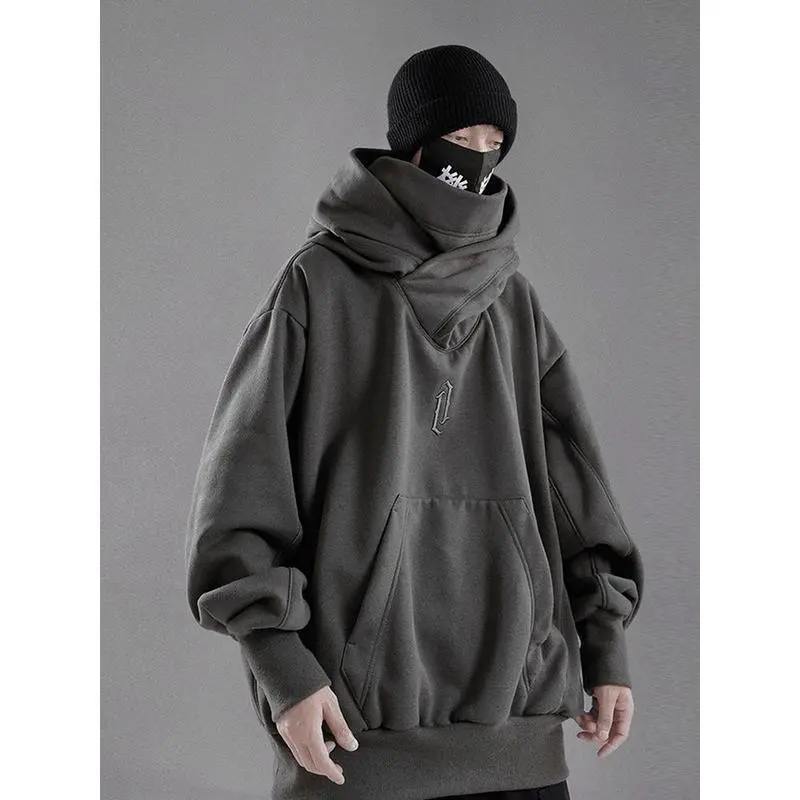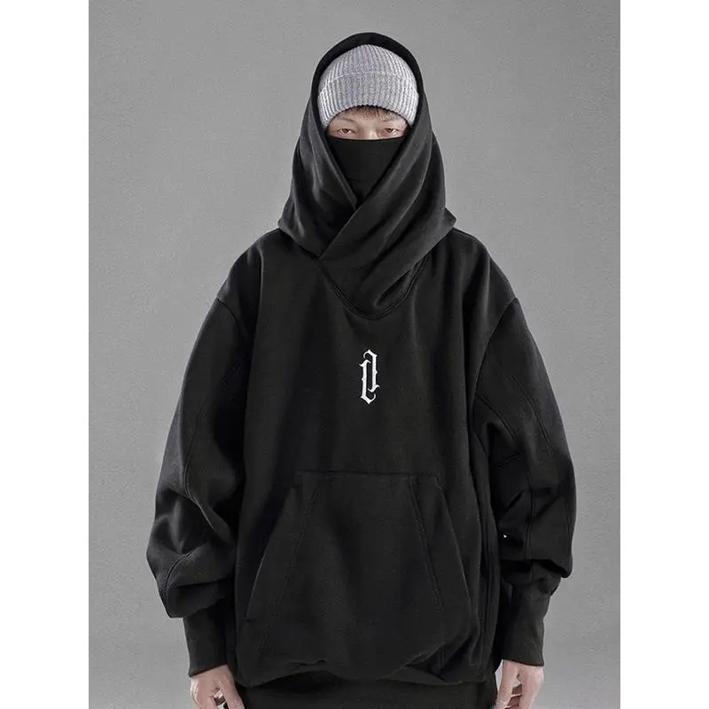 EmbroideryTurtleneckSweatshirtForMenJapaneseNinjaHoodiesAutumnHipHopFleecePocketStreetwearOversizedY2KHoody
