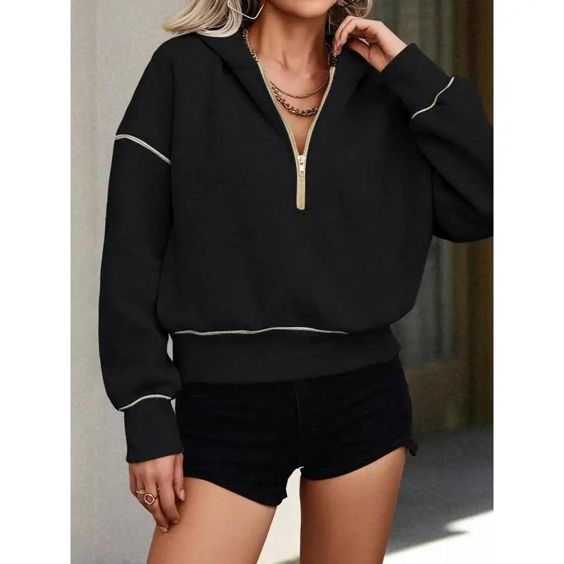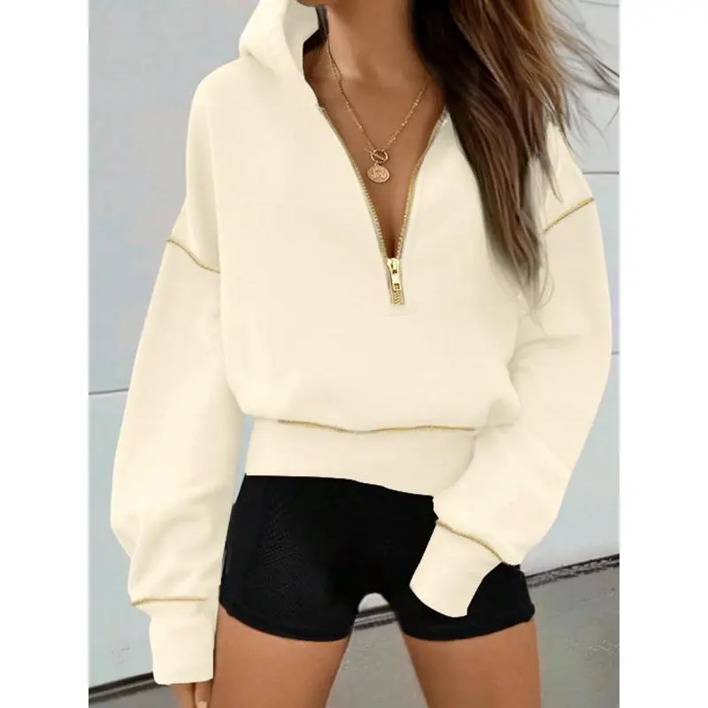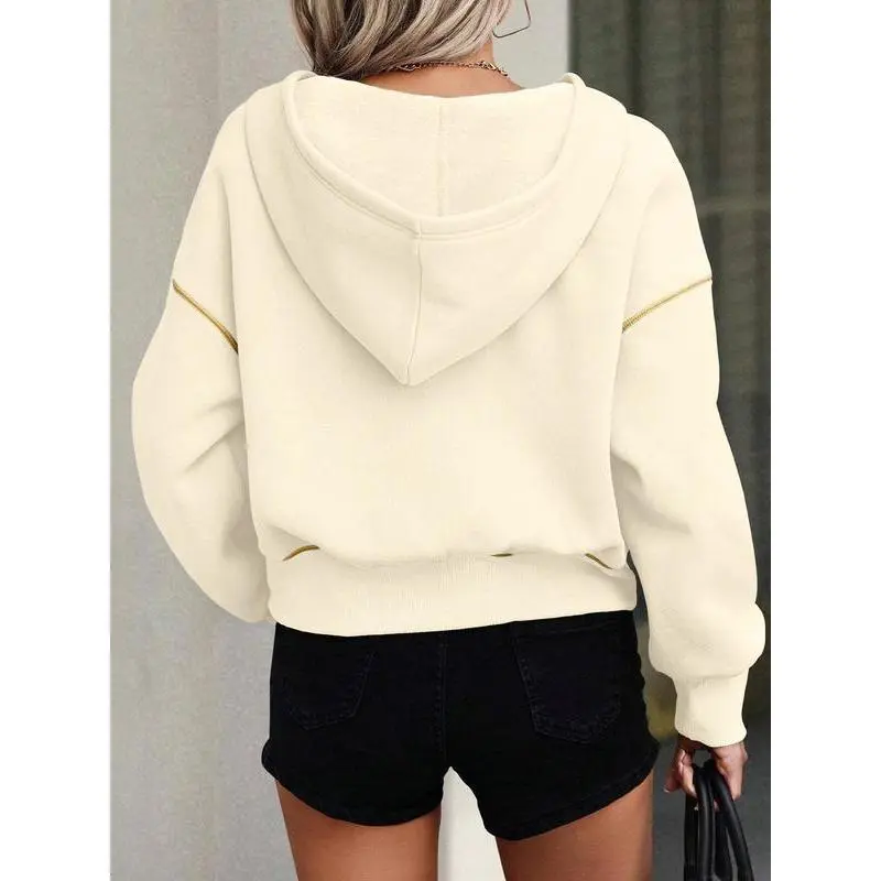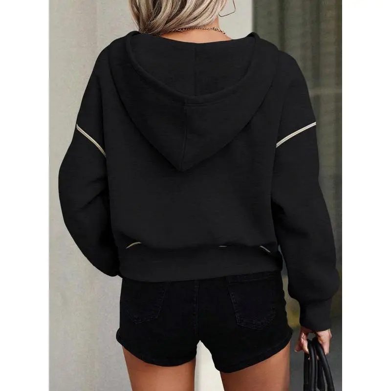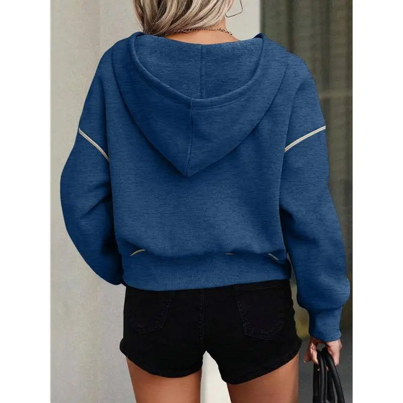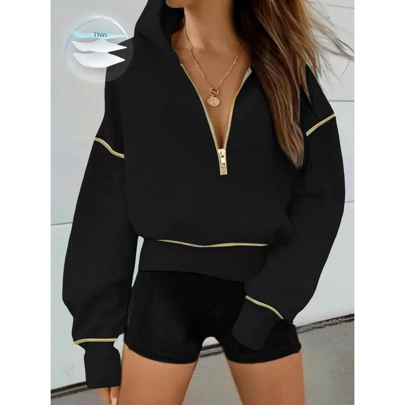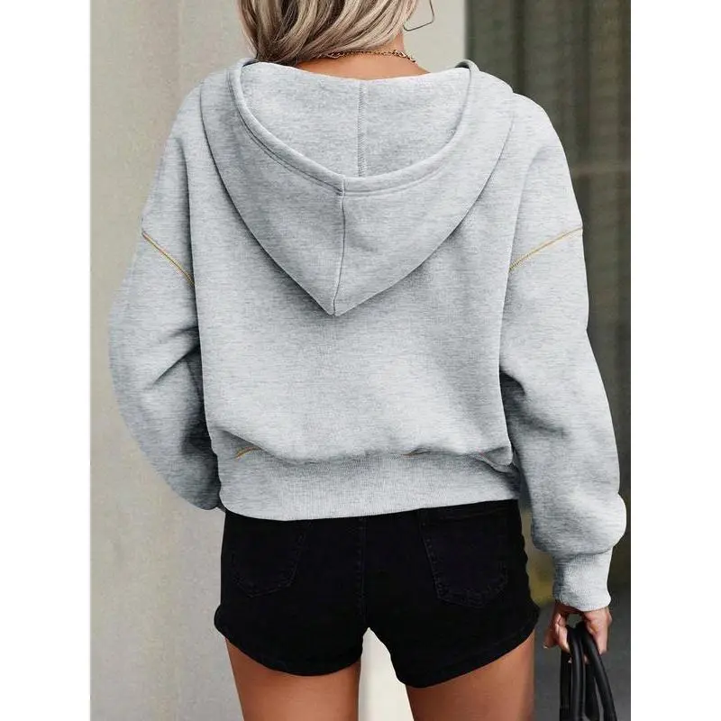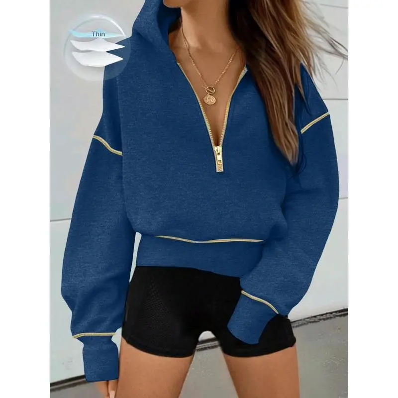 Women's Loose-Fit Hooded Sweatshirt with Zipper Pocket, Casual Long Sleeve Pullover for Daily Wear & Sports, Comfortable Ladies' Apparel