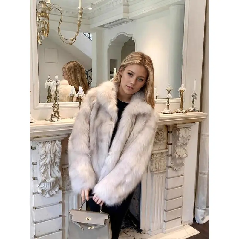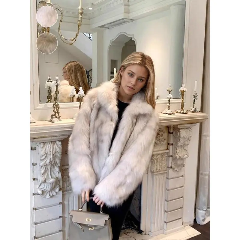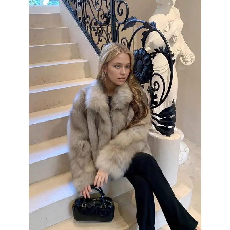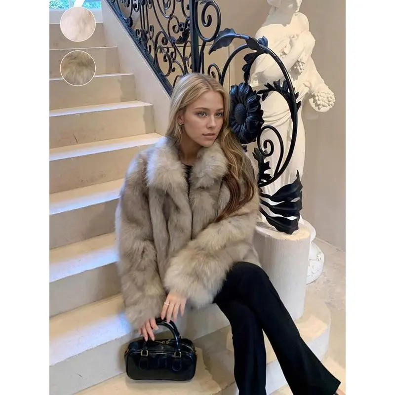 Women's Faux Fox Fur Coat, Elegant Loose-Fit Stand Collar Long Sleeve Jacket, Thick Warm Winter Outerwear for Fall & Winter Seasons