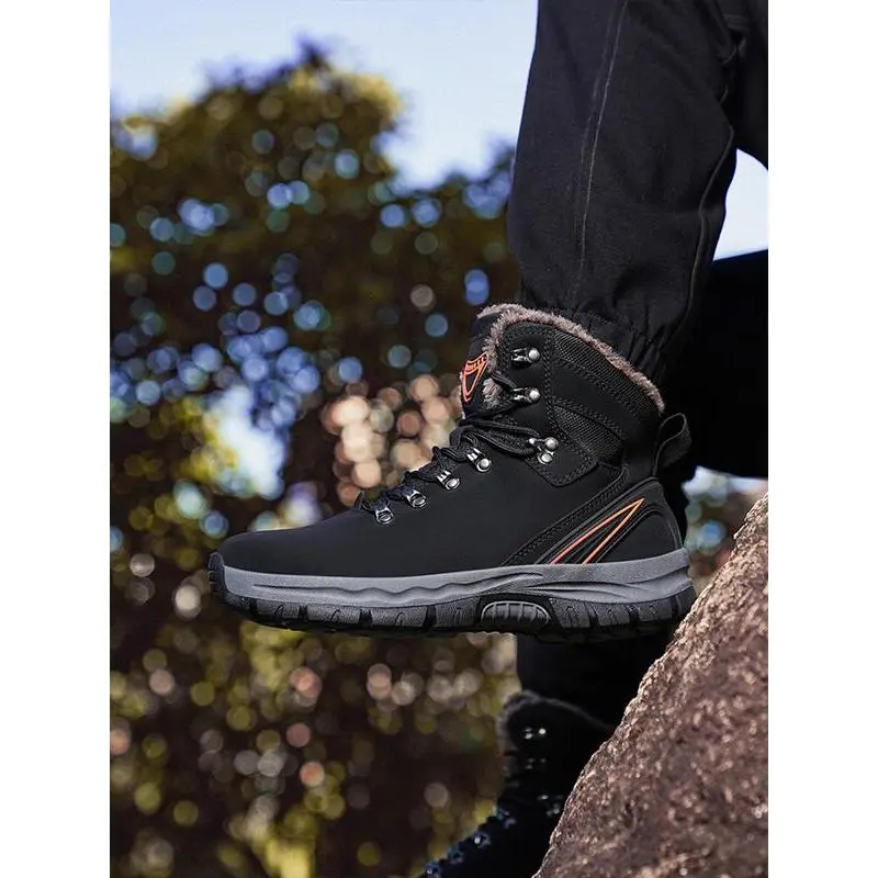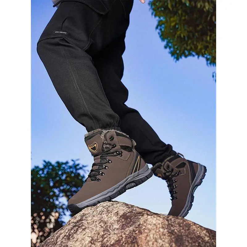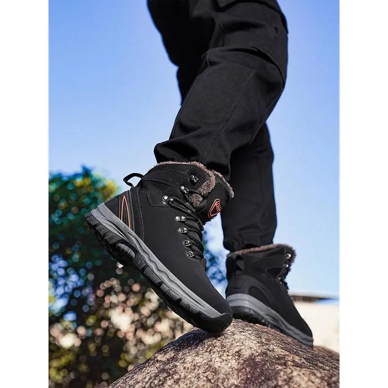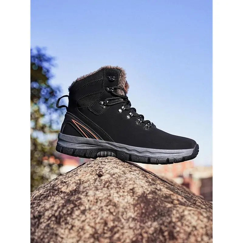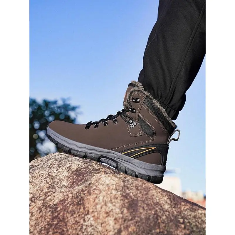 【High-Top Design】: Featuring a high-top construction, these boots provide excellent ankle support for hiking and outdoor activities. 【Warm Lining】: Equipped with a fleece lining, these boots ensure warmth during colder months, maintaining comfort in chilly conditions. 【Weather Resistance】: The waterproof feature keeps feet dry, making these boots suitable for wet and rainy outdoor adventures. 【Slip-Resistant Sole】: Constructed with a rubber sole, these boots offer enhanced traction and stability on various terrains. 【Durable Materials】: Crafted from PU leather, these boots are designed for durability, resistant to wear and tear from outdoor use.