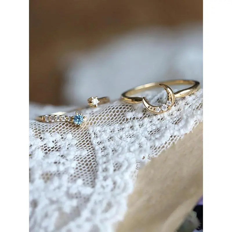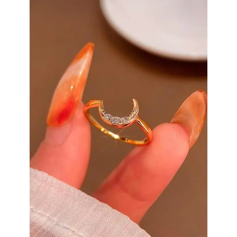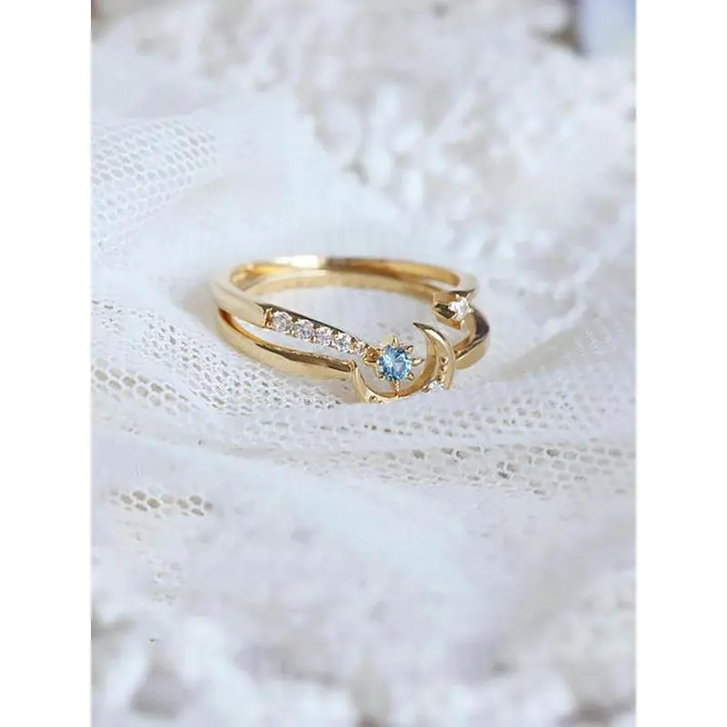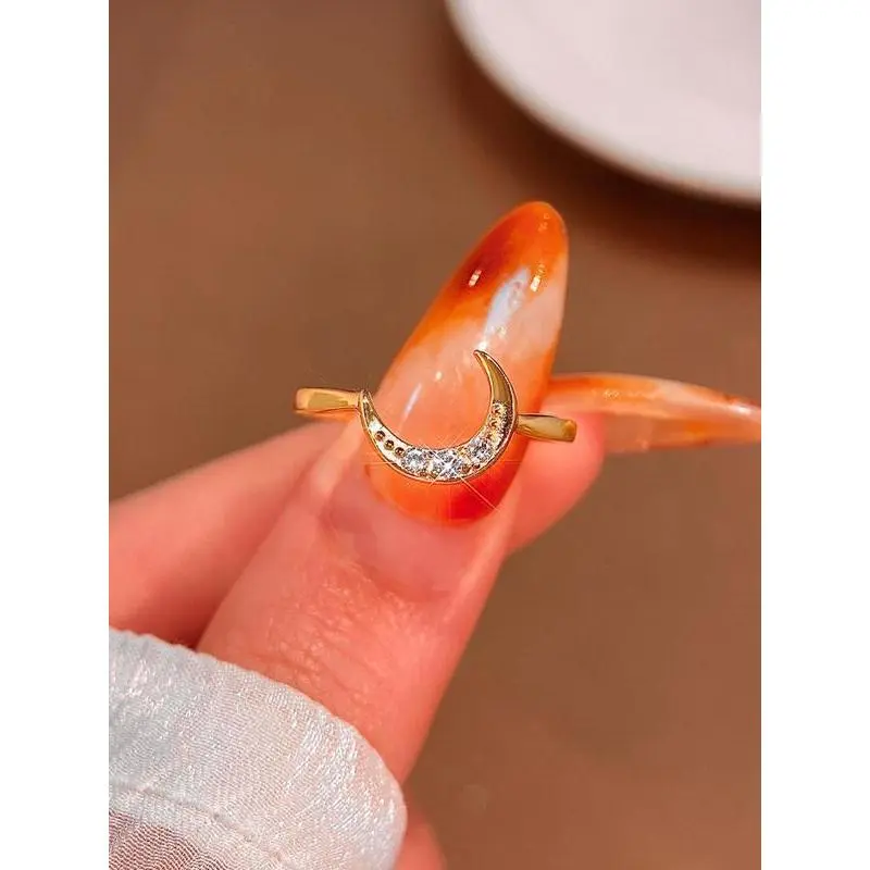 925 Sterling Silver Fashion Chic Star & Moon Design Cuff Ring, Artificial Zircon Decor Ring, Elegant Jewelry for Women, Gift for Girlfriend