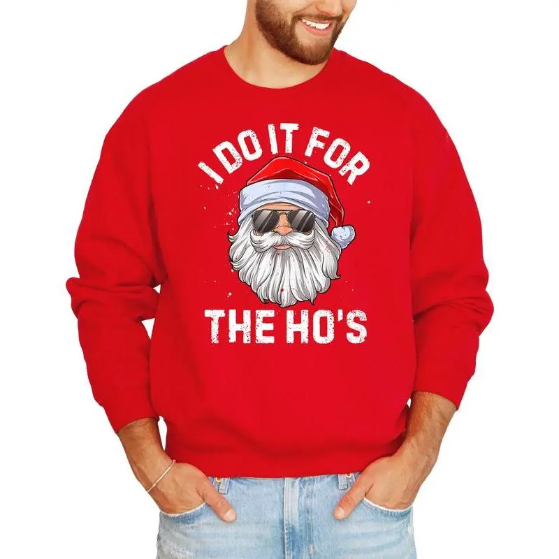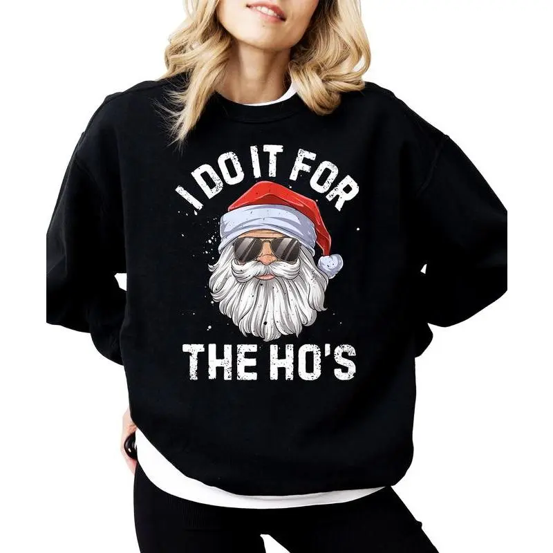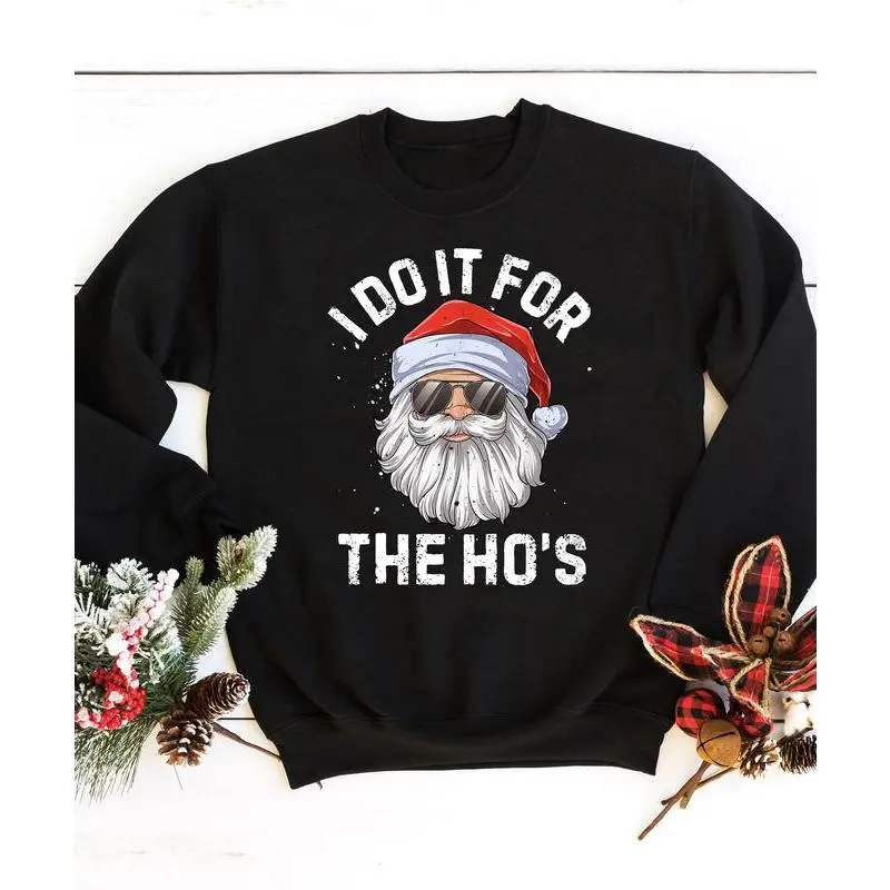 I do it for the Ho's Sweatshirt for Women and Men - Funny Christmas Sweater for Adults - Cool Santa in Sunglasses Pullover