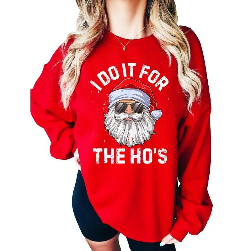 This "I do it for the Ho's" sweatshirt is a perfect choice for both women and men, adding a touch of humor to your Christmas wardrobe. The long sleeve design makes it suitable for the winter season, while the loose-fitting cut ensures comfort all day long. Whether you're celebrating Christmas or just want to spread some holiday cheer, this sweatshirt is a festive choice!