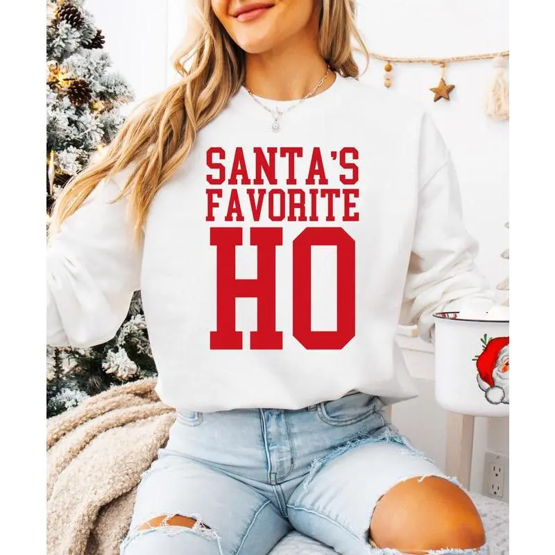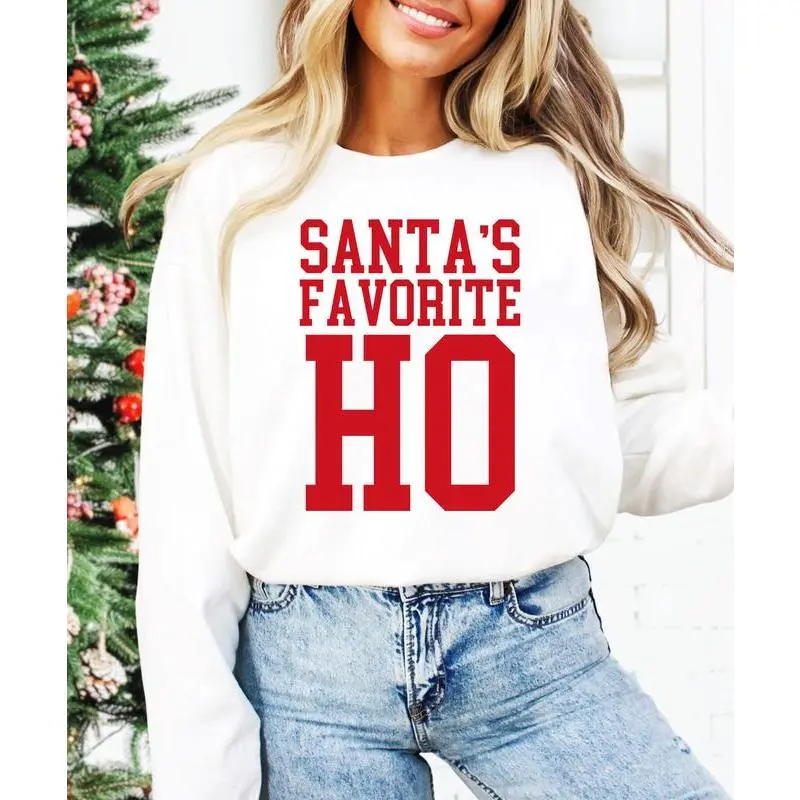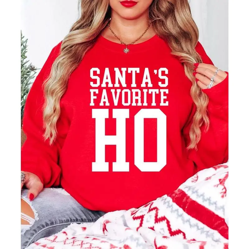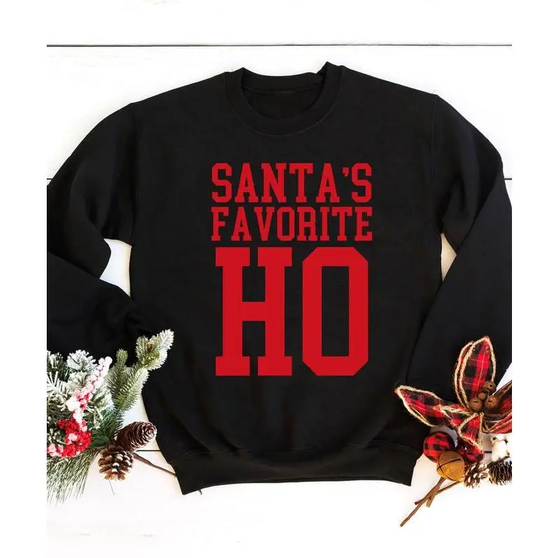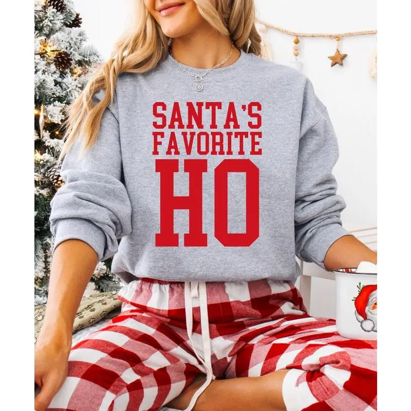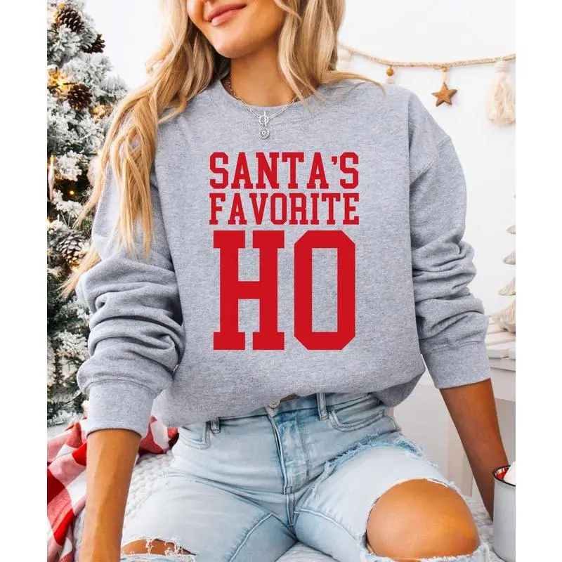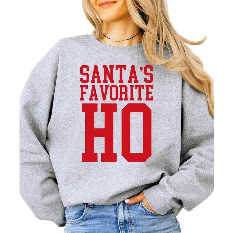 Santa's Favorite Ho Sweatshirt for Women - Funny Christmas Sweater for Adults - Winter Holiday Pullover - Gift for Christmas Lover Casual Comfort