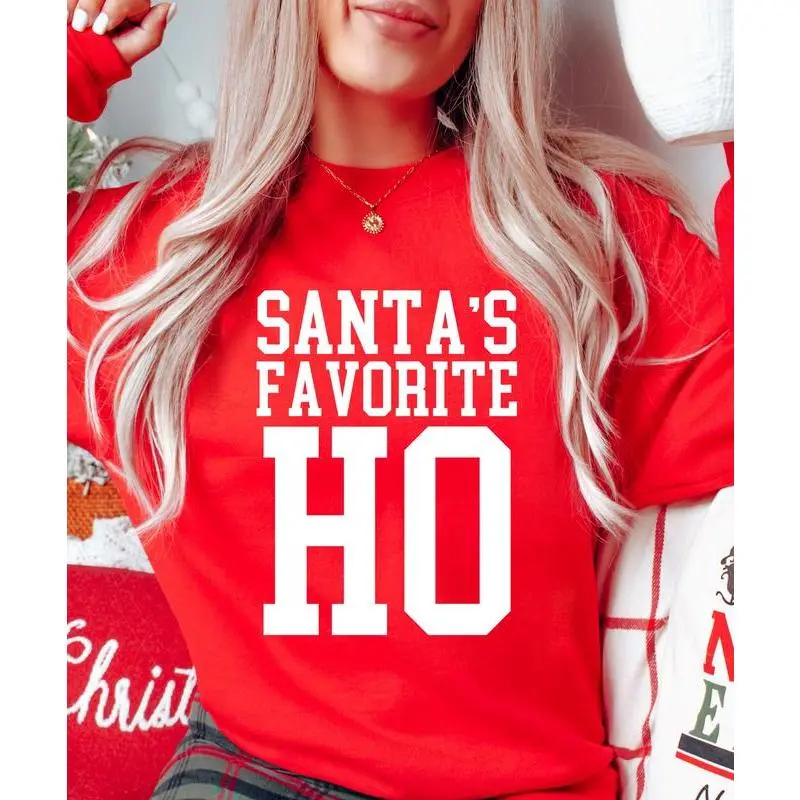 This Santa's Favorite Ho Sweatshirt for Women is the perfect addition to your winter wardrobe, offering a touch of humor and holiday spirit. The long length and sleeve length of this sweatshirt make it perfect for staying cozy during the winter months. Whether you're lounging at home or out running errands, this pullover is both fun and functional. Add some festive cheer to your wardrobe with this Santa's Favorite Ho Sweatshirt - an excellent gift choice for any Christmas lover!