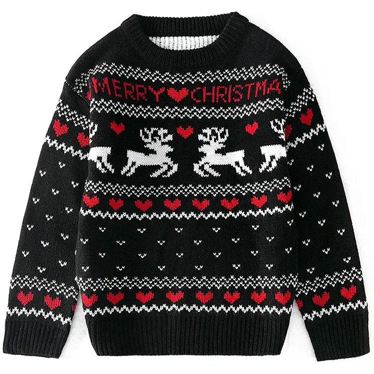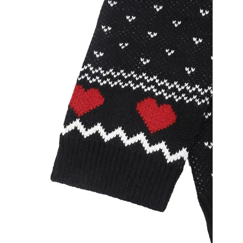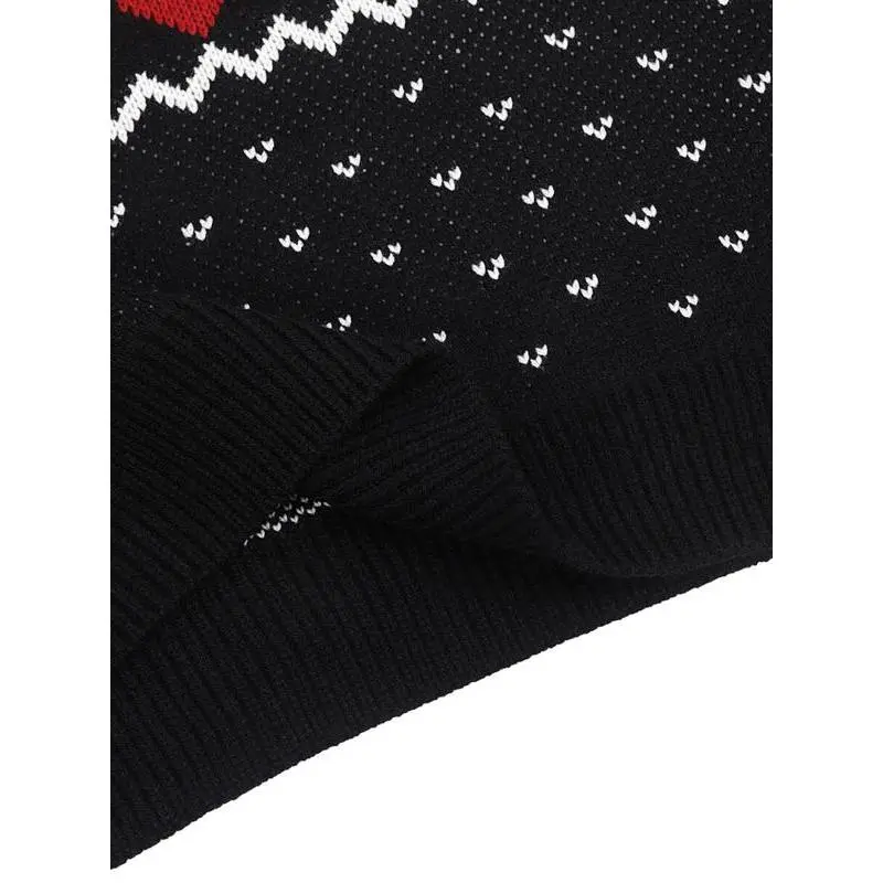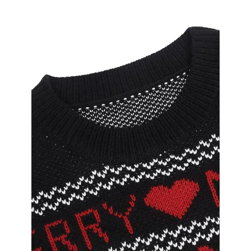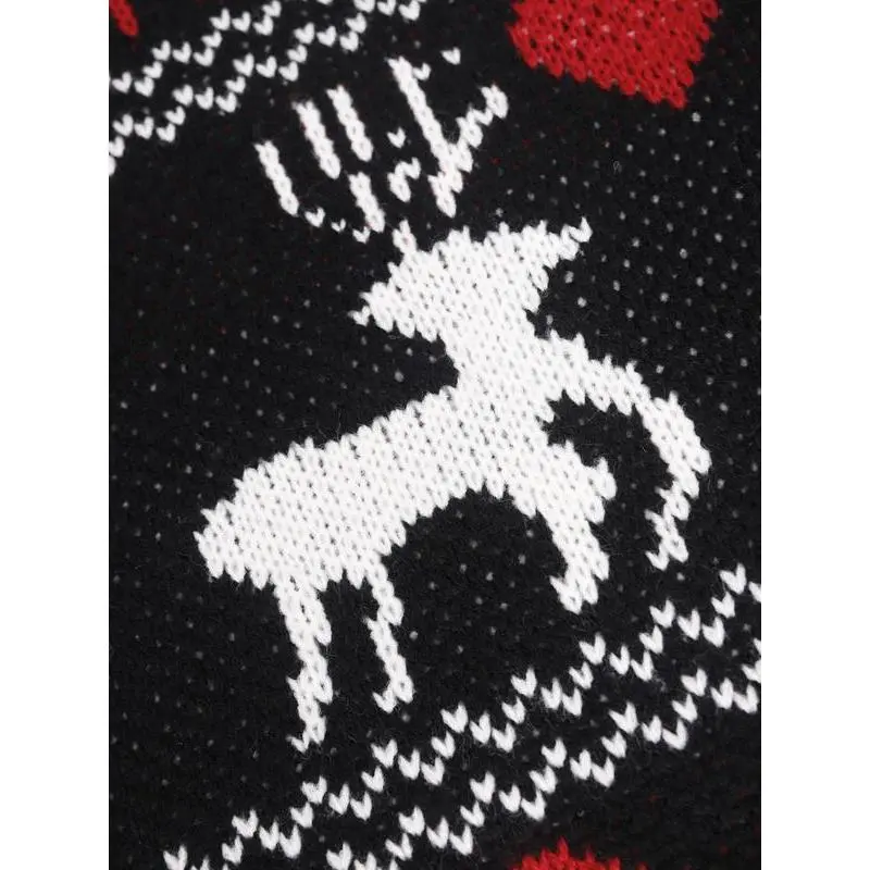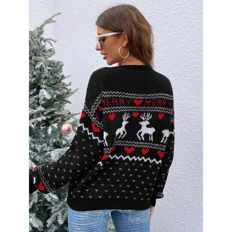 Women's Christmas Reindeer & Heart Print Drop Shoulder Sweater, Casual Long Sleeve Round Neck Jumper for Fall & Winter, Ladies' Knitwear for Daily Wear