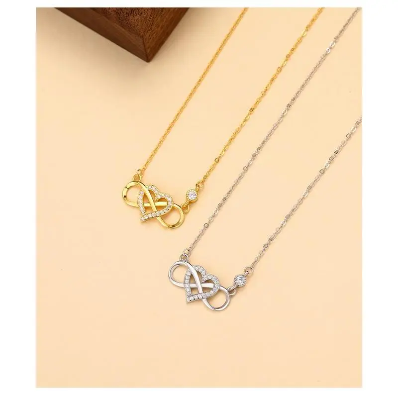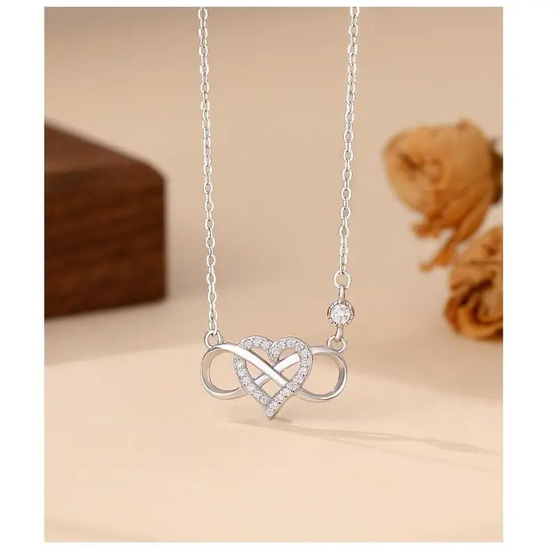 Infinity Heart Necklace for Women Sterling Silver Zircon Crystal Gemstone Heart Necklace for Girlfriend Love Heart Pendant Mother's Gift Chiristmas Jewelry Gift