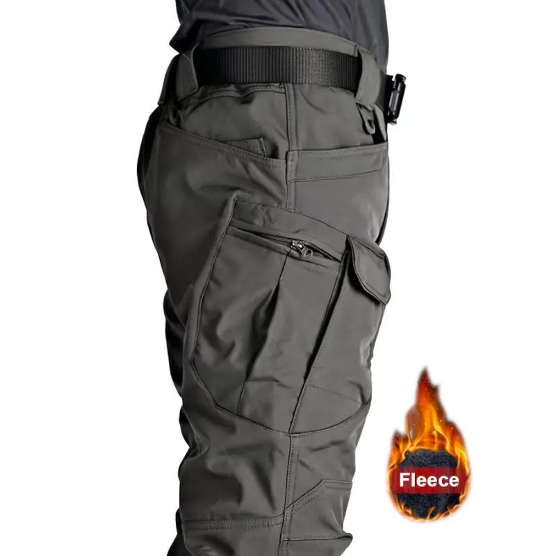 Men's Regular Fit Warm Fleece-Lined Tactical Pants, Casual Solid Color with Pockets, Thermal Wear for Winter, All-Season Comfy Woven Bottoms Streetwear