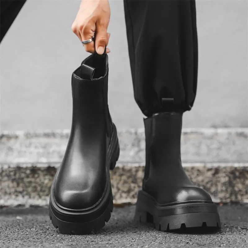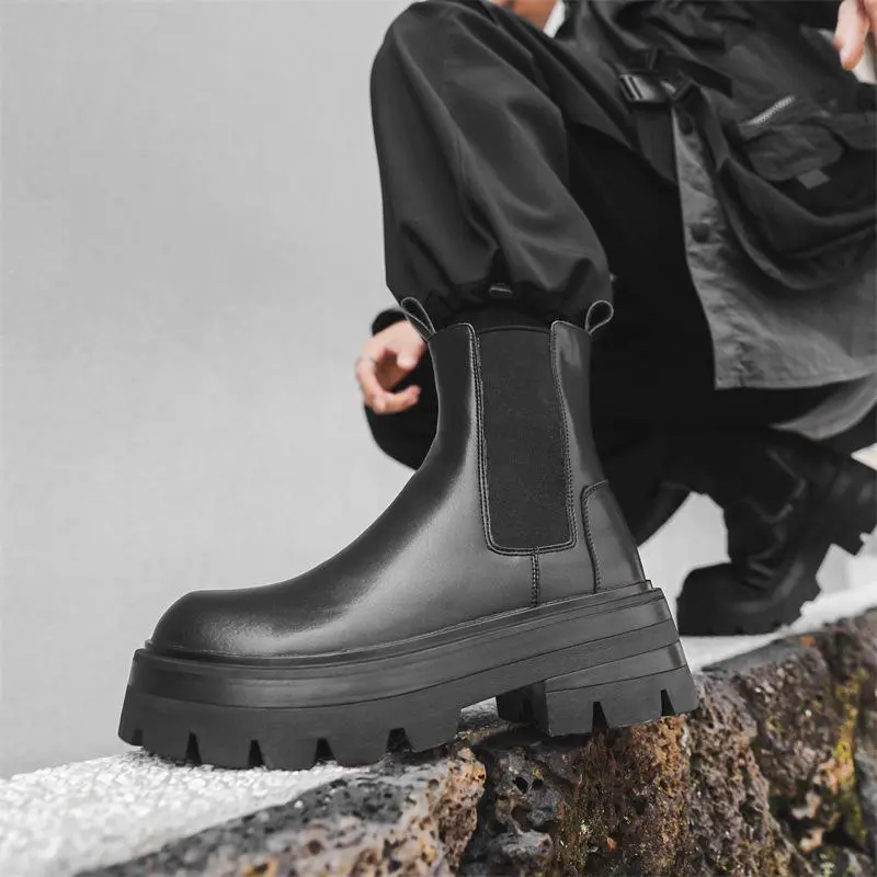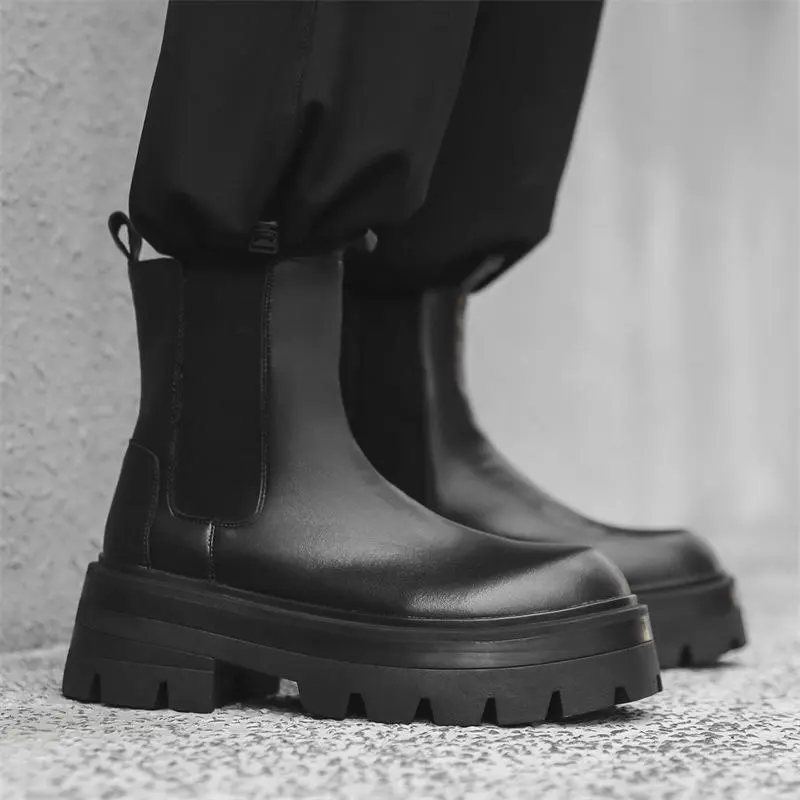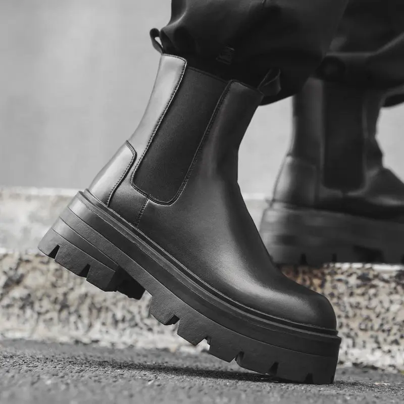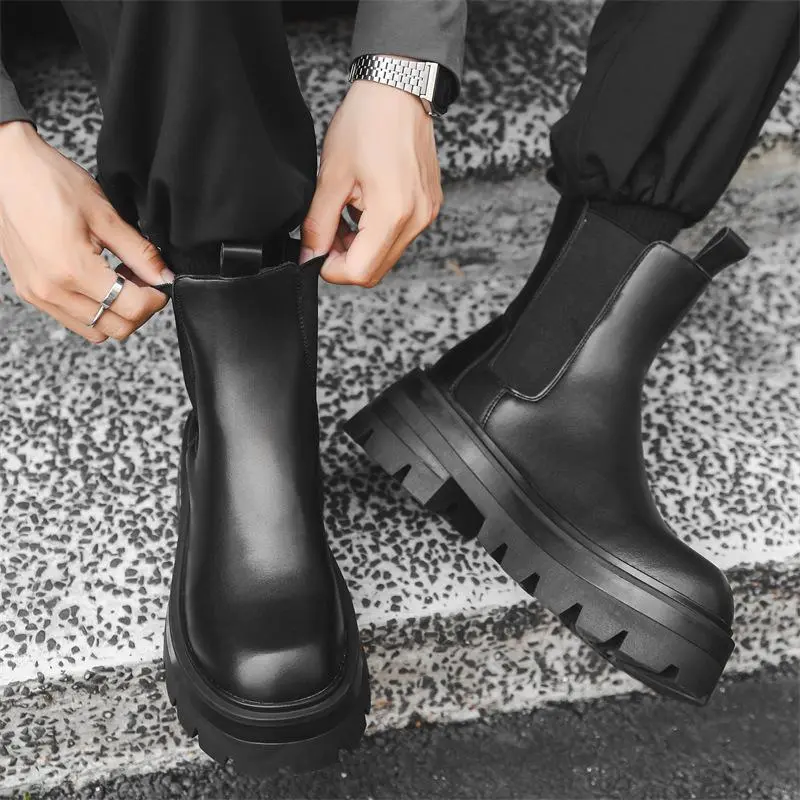 Men's Chunky Sole Chelsea Boots British Style Slip-On Versatile Casual Ankle Boots