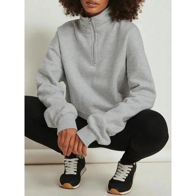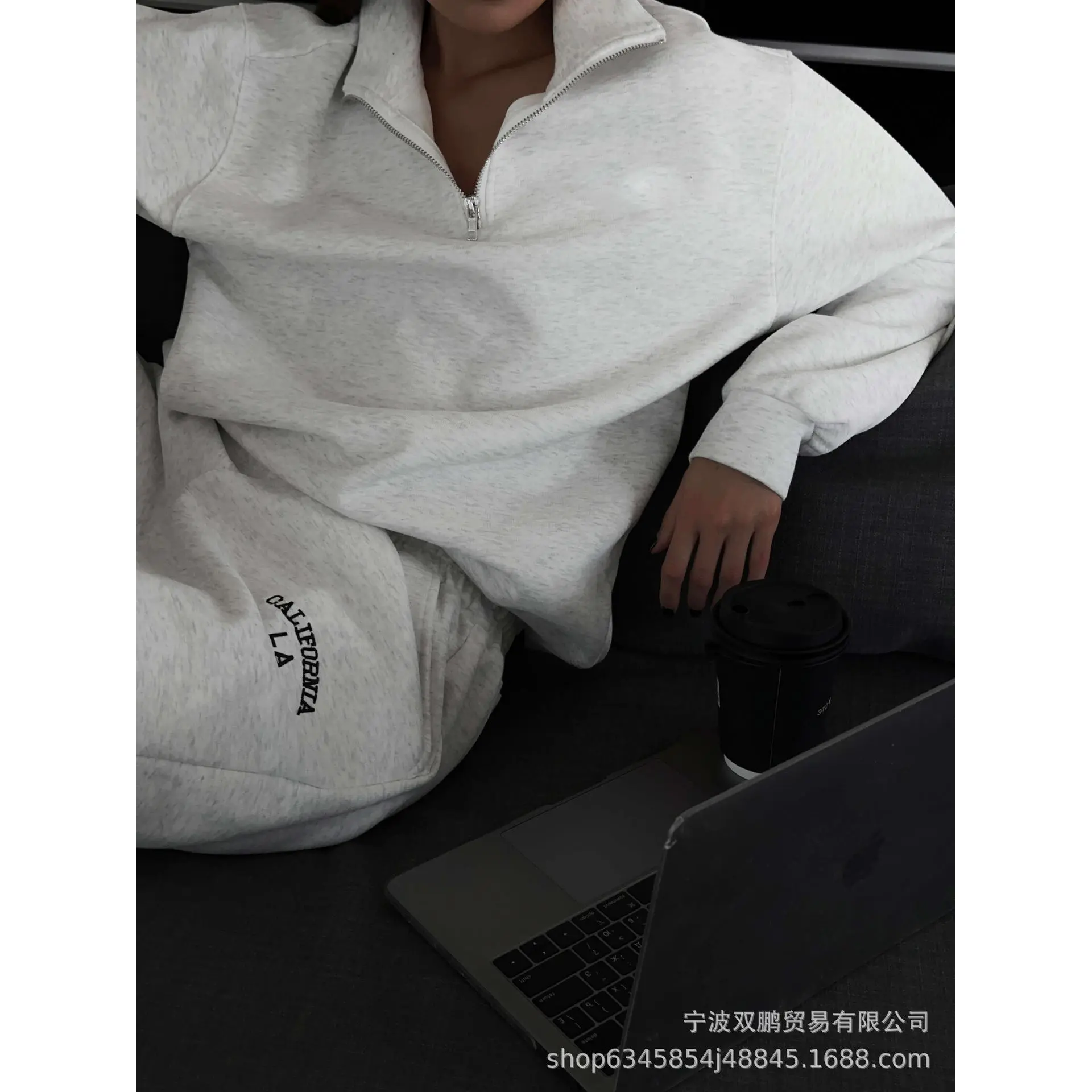 Women's Plain Half Zip Drop Shoulder Fuzzy Lounge Sweatshirt, Casual Long Sleeve Stand Collar Pullover for Spring & Fall, Ladies Sleepwear for Indoor Wear