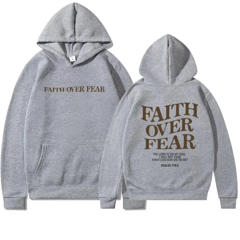 FaithOverFearChristianHoodieChristianSweatshirtJesusHoodieTrendyHoodieBibleVerseShirtUnisexAestheticClothes