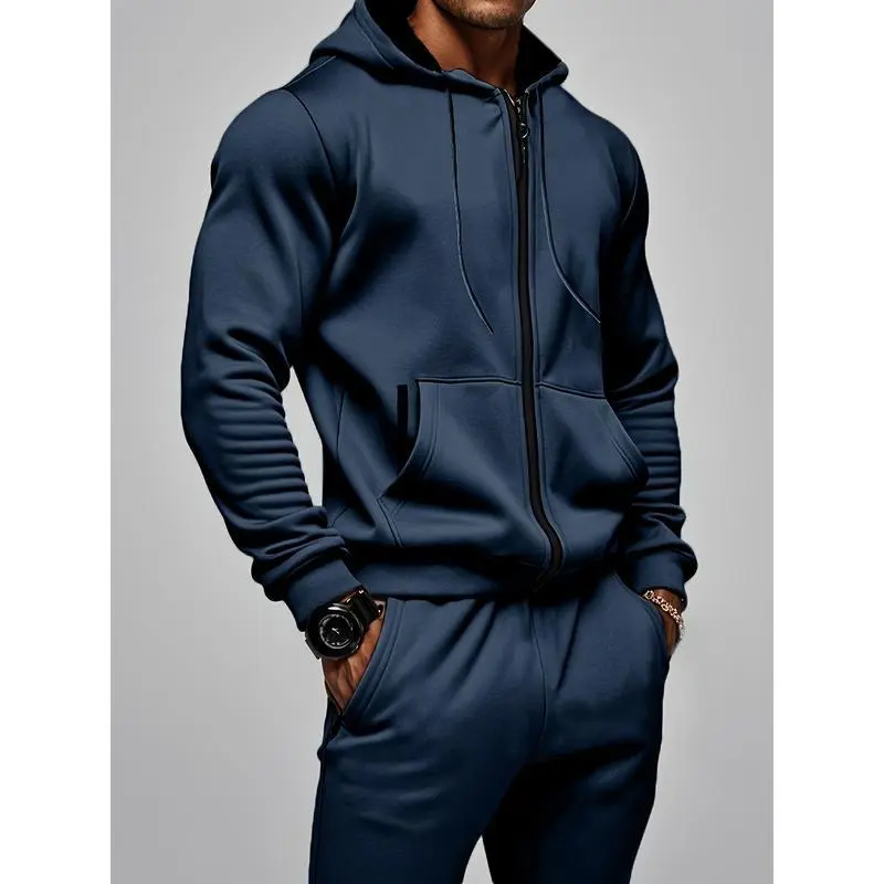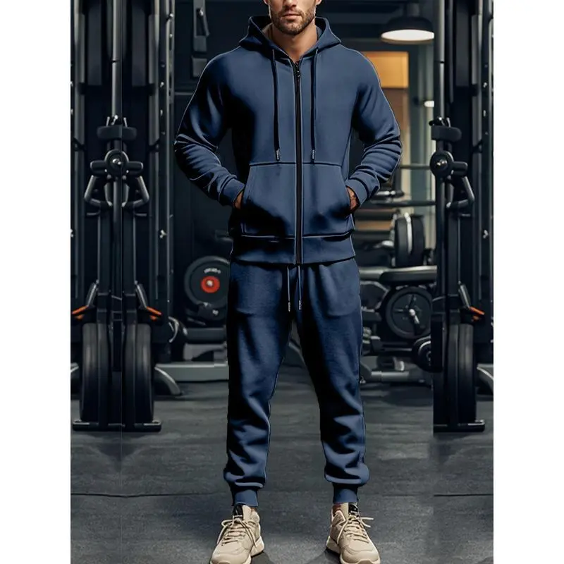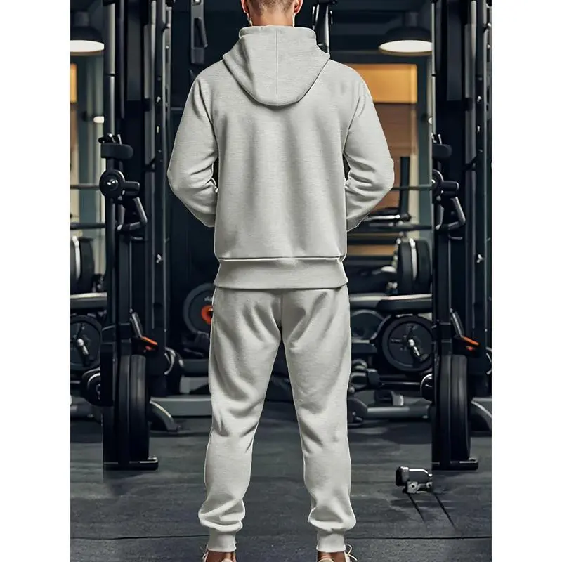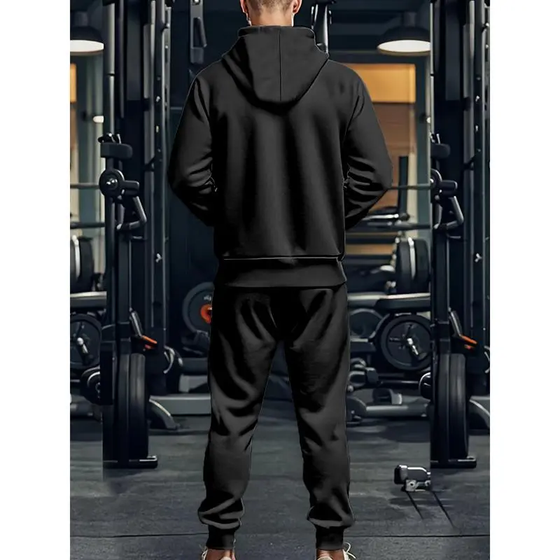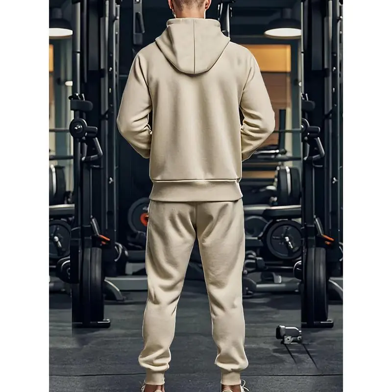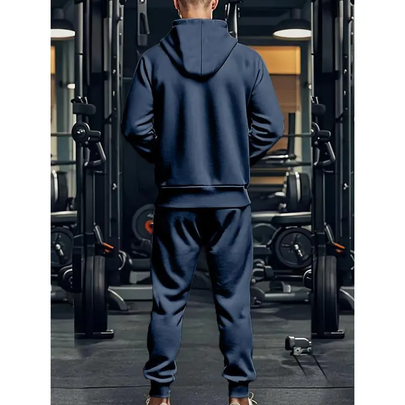 Casual Solid Color 2pcs Men's Hooded Long Sleeve Sweatshirt + Pants Set - Co-ord Sports Fitness Set