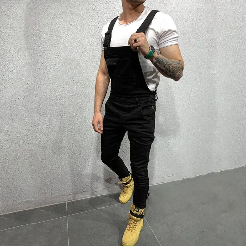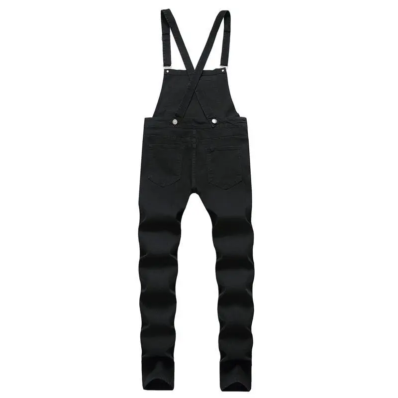 Streetwear Men Simple Solid Slim Jumpsuits Biker Jeans High Quality Men Stylish Bib Overalls Strap Denim Pants