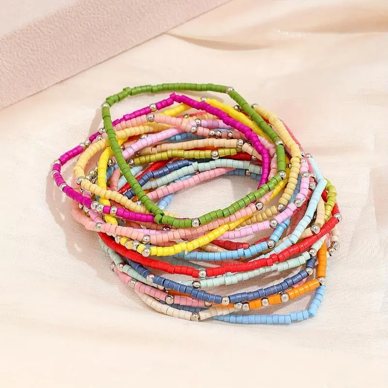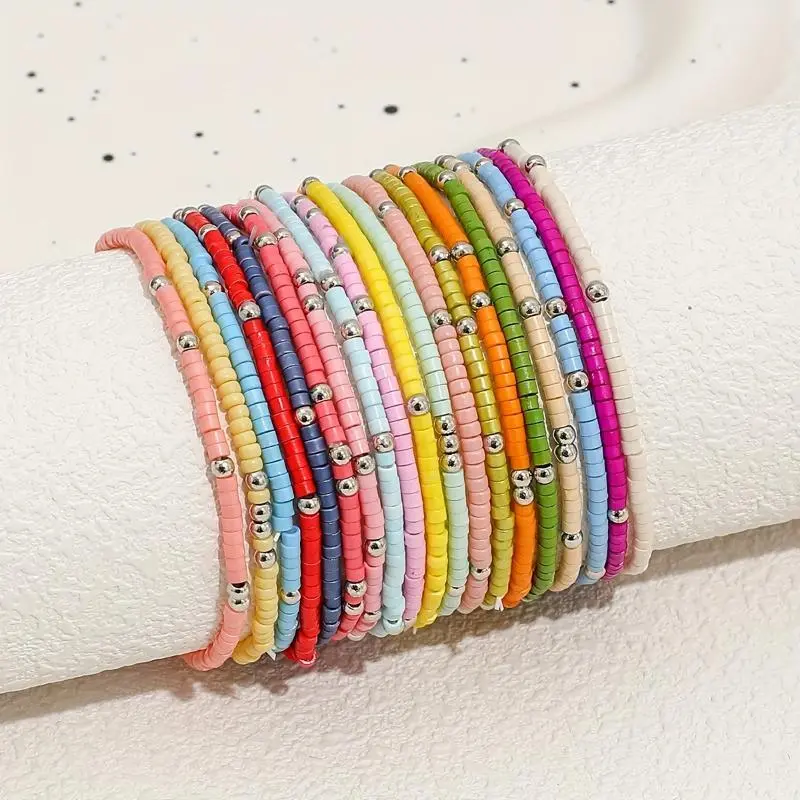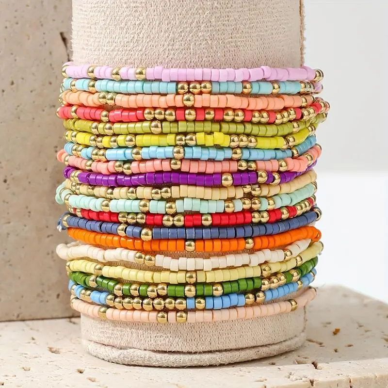 19-Piece Boho Style Beaded Bracelet Set - Mixed Glass and Plastic Beads, No Mosaic, Versatile for Daily and Vacation Wear, All-Season Compatible stack Cute Jewelry Jewlery