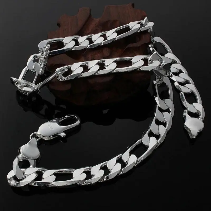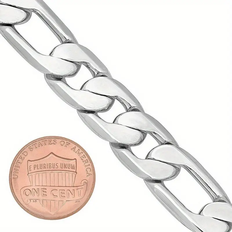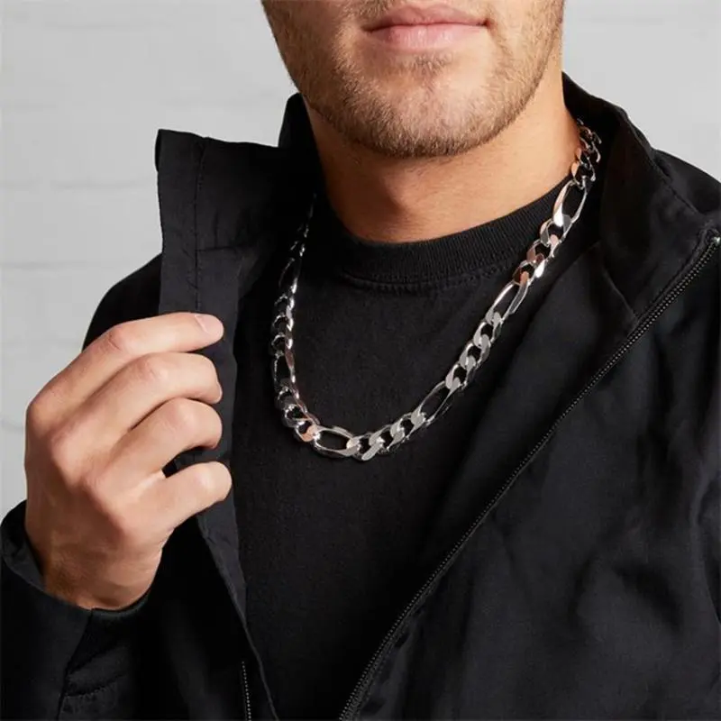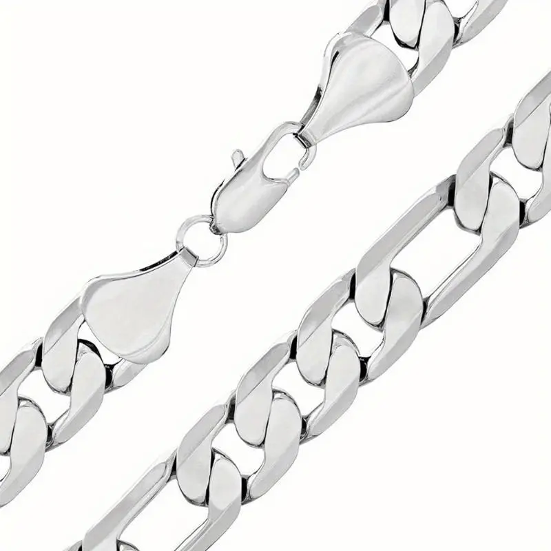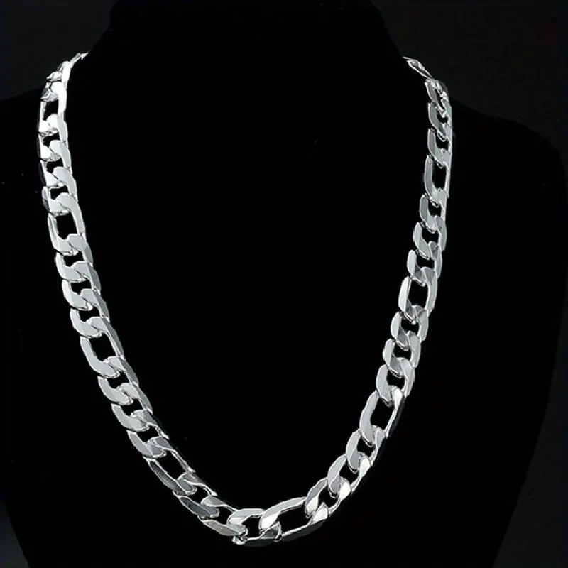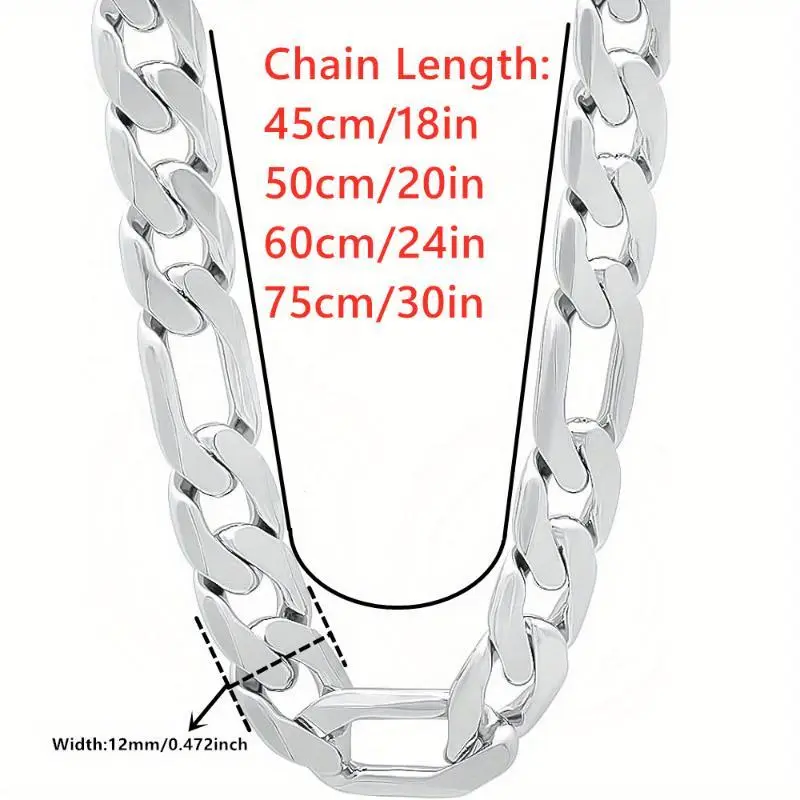 1pc Stylish 12mm 925 Sterling Silvery Plated Men's Flat Figaro Link Chain Necklace - A Perfect Gift for The Minimalist for Man Women!