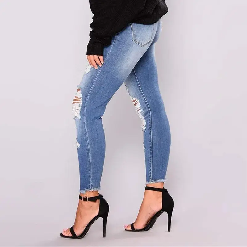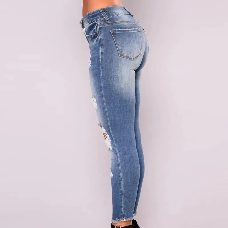 Women'SStretchyRippedHoleTrousersSlimJeansButtLiftingDistressedDenimPantsWithPocketsVintageWomenswearBottomCheckCasualSkinny