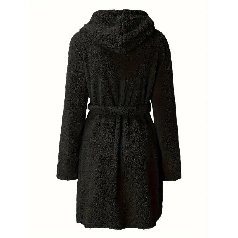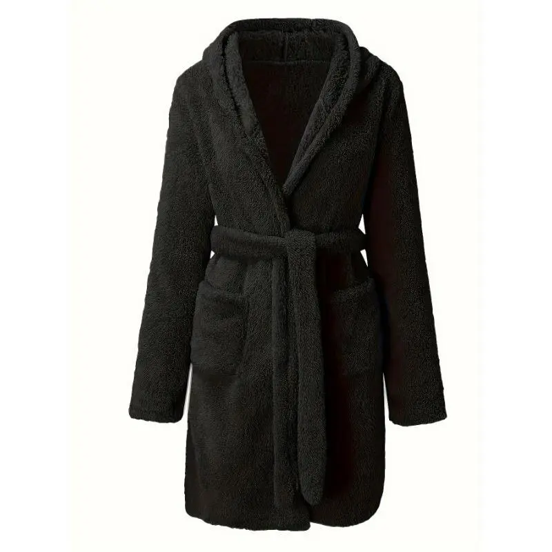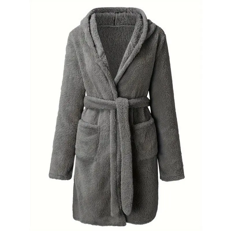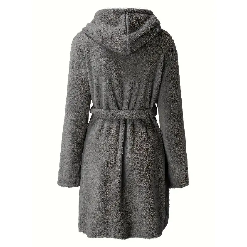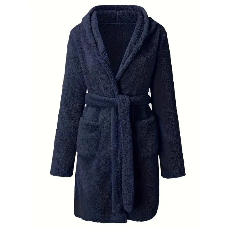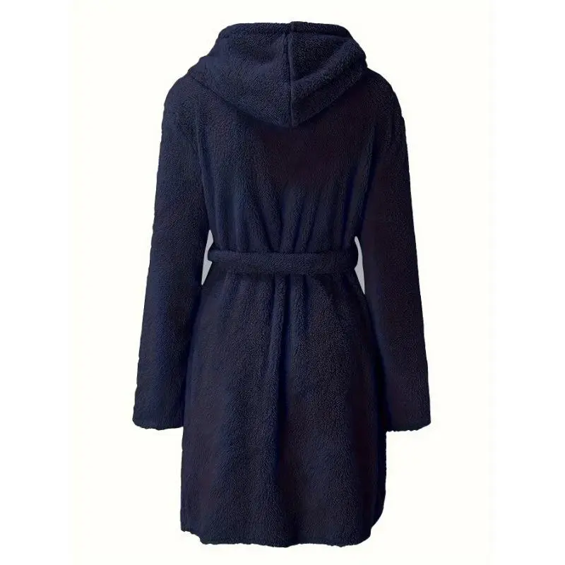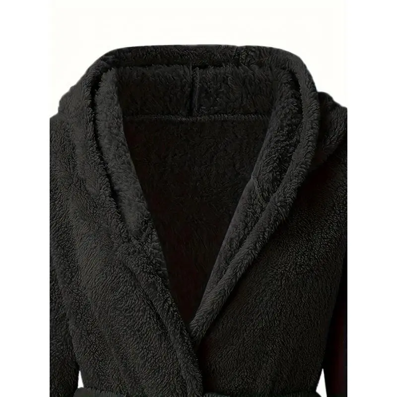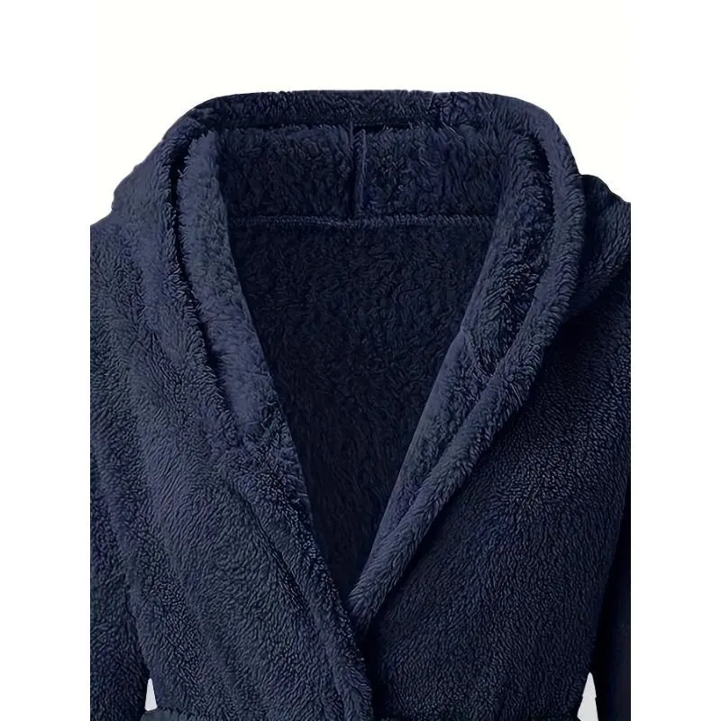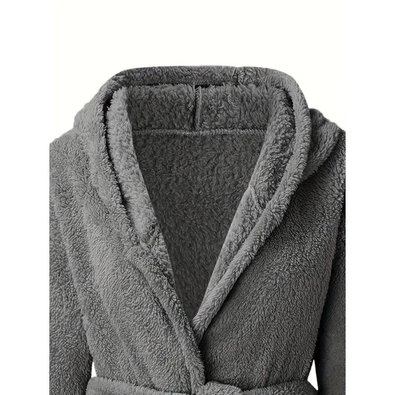 Men'sSolidWinterPlushHoodedBathrobe,ThickenedWarmLong-SleeveFleeceLoungewear,SimpleCasualStyle