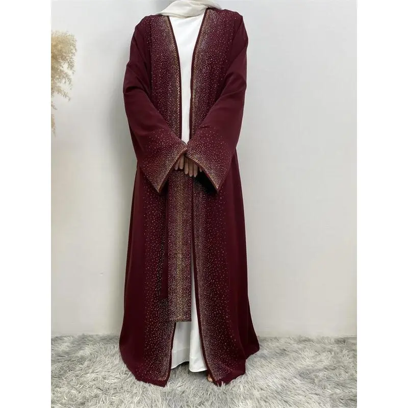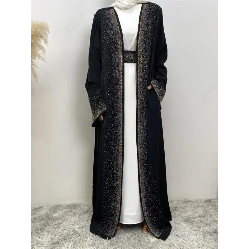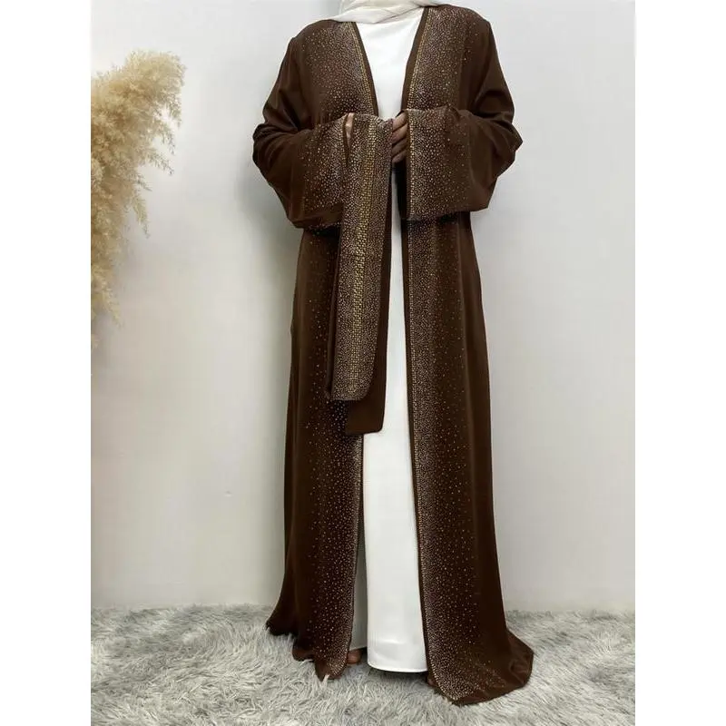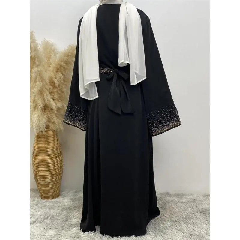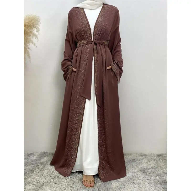 Women'sGlitterRhinestoneEmbellishedBeltedAbaya,LongSleeveOpenFrontAbayas,Women'sIslamicClothingforSpring&Fall