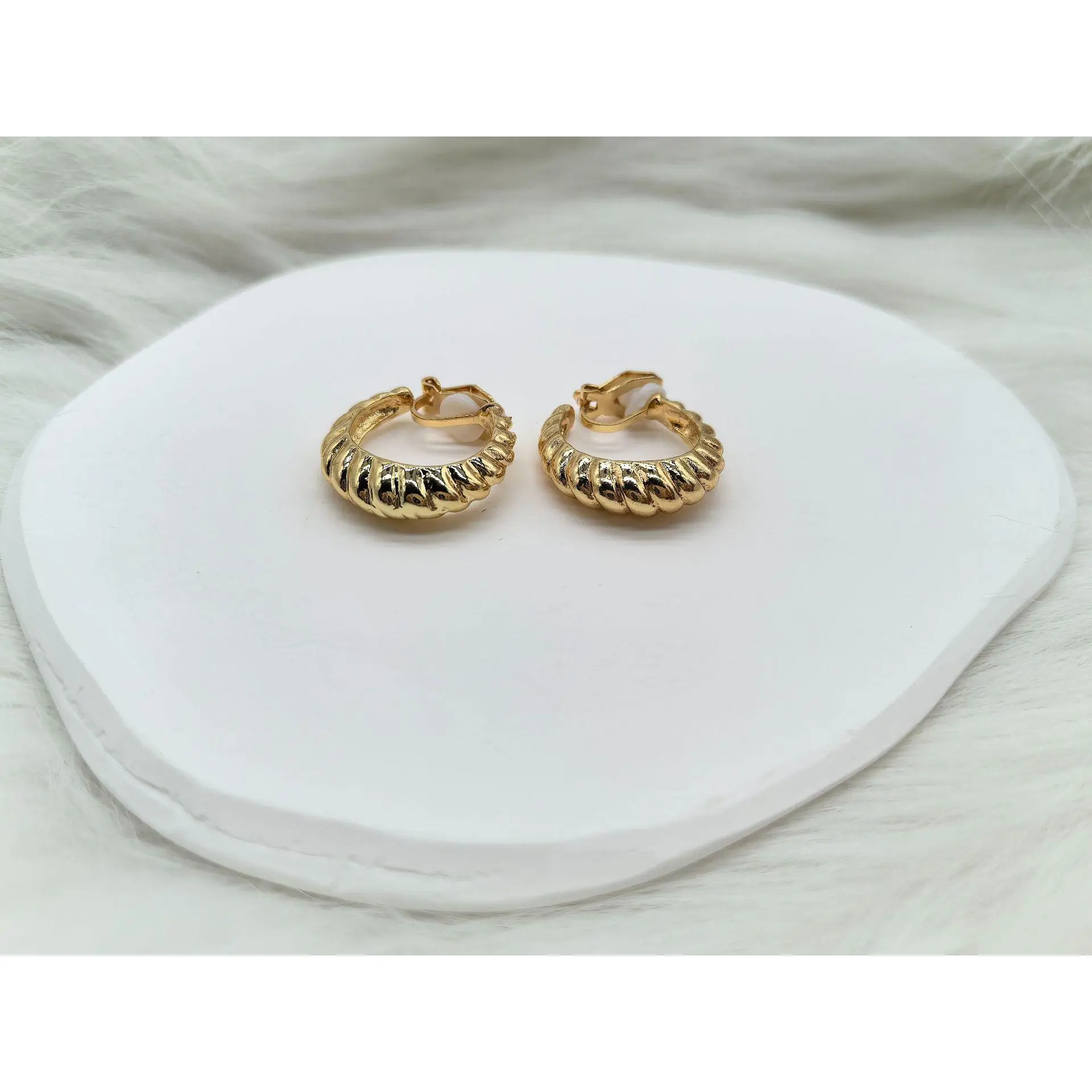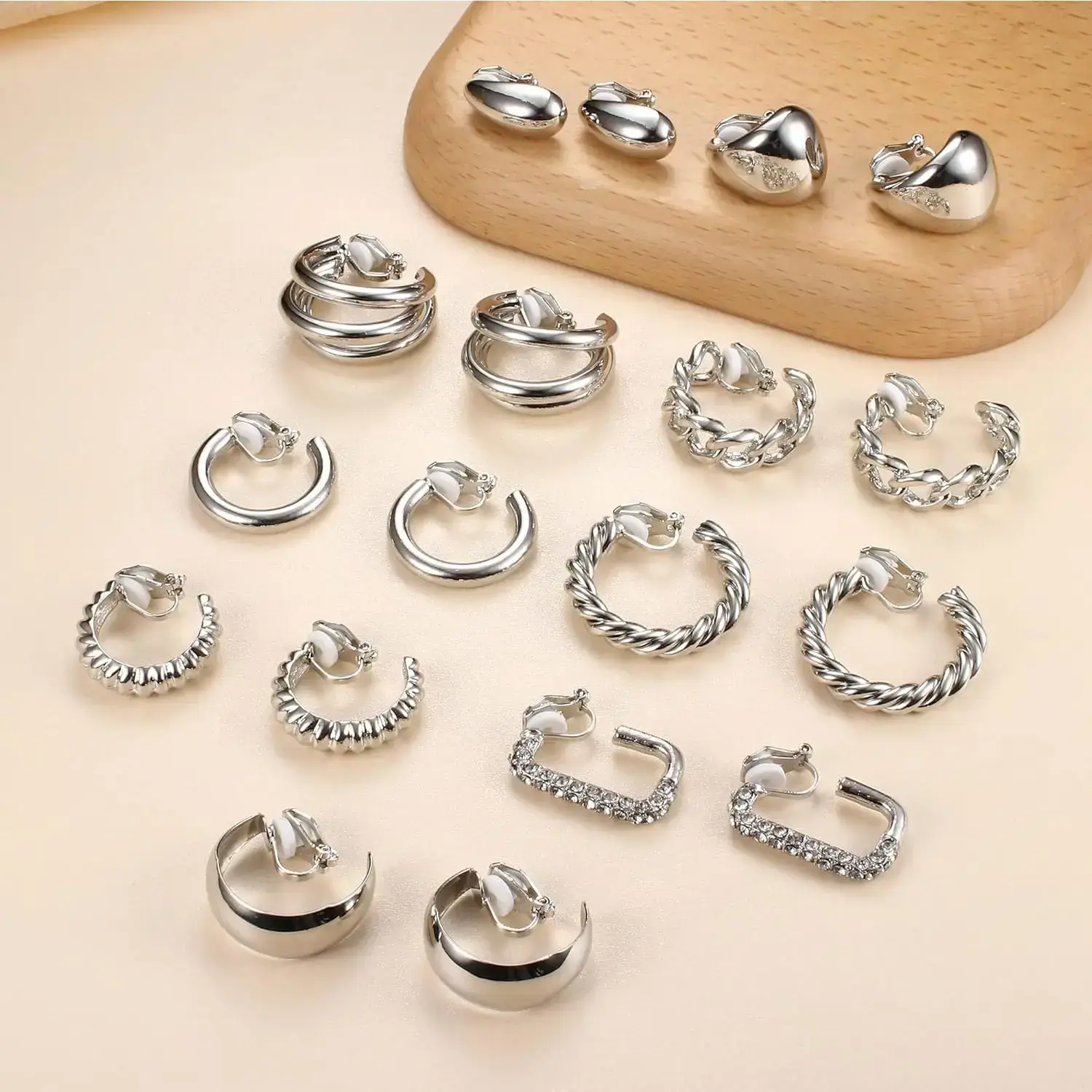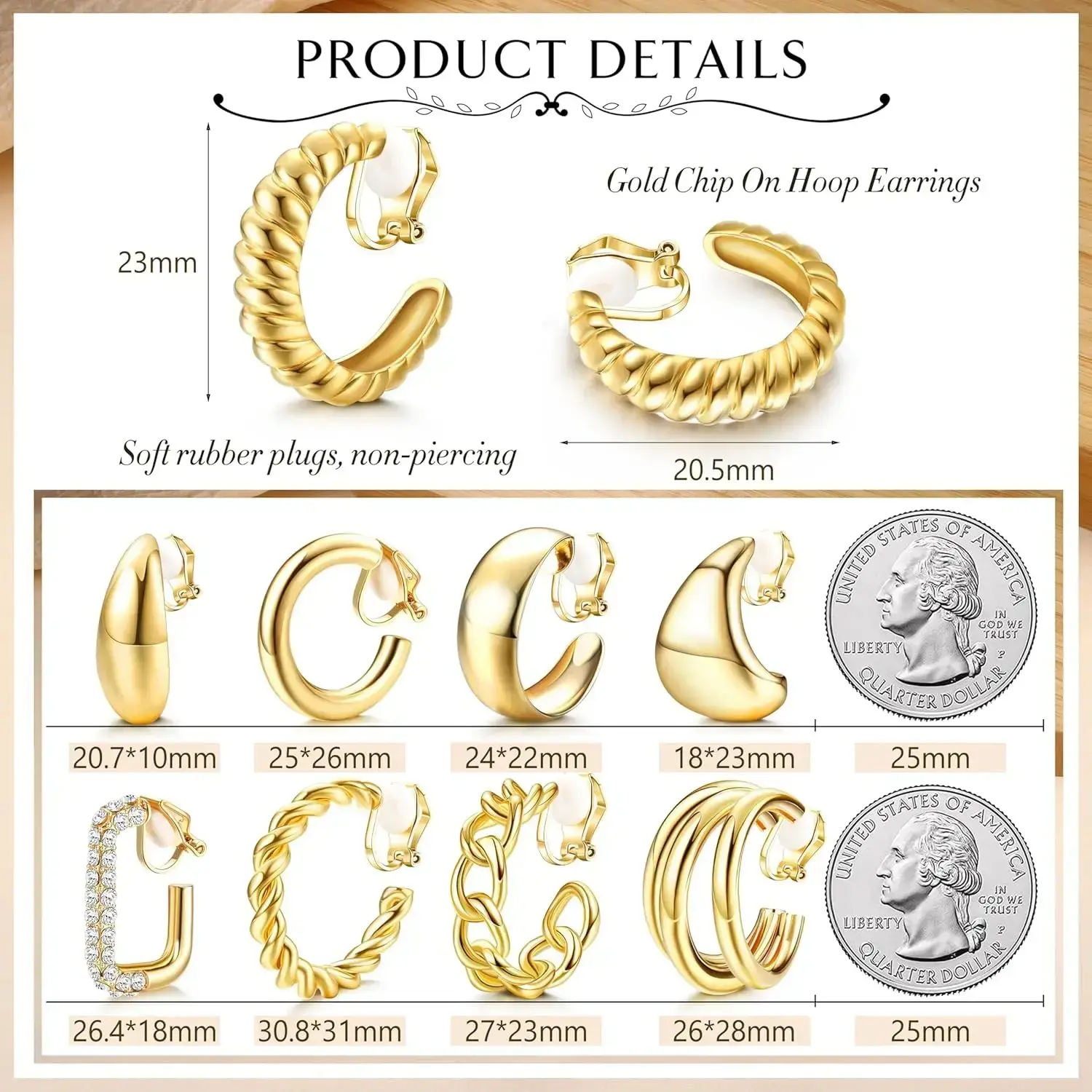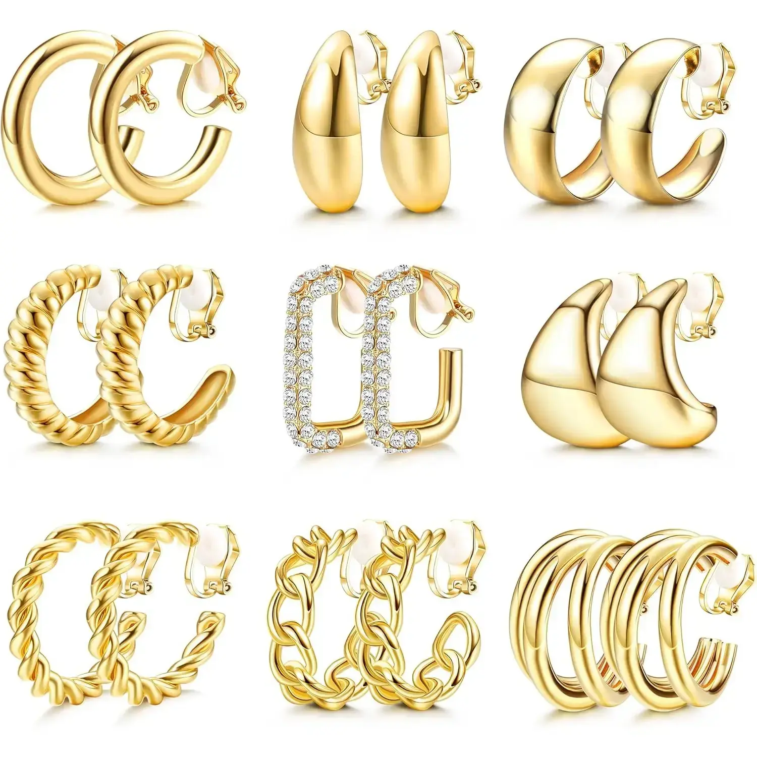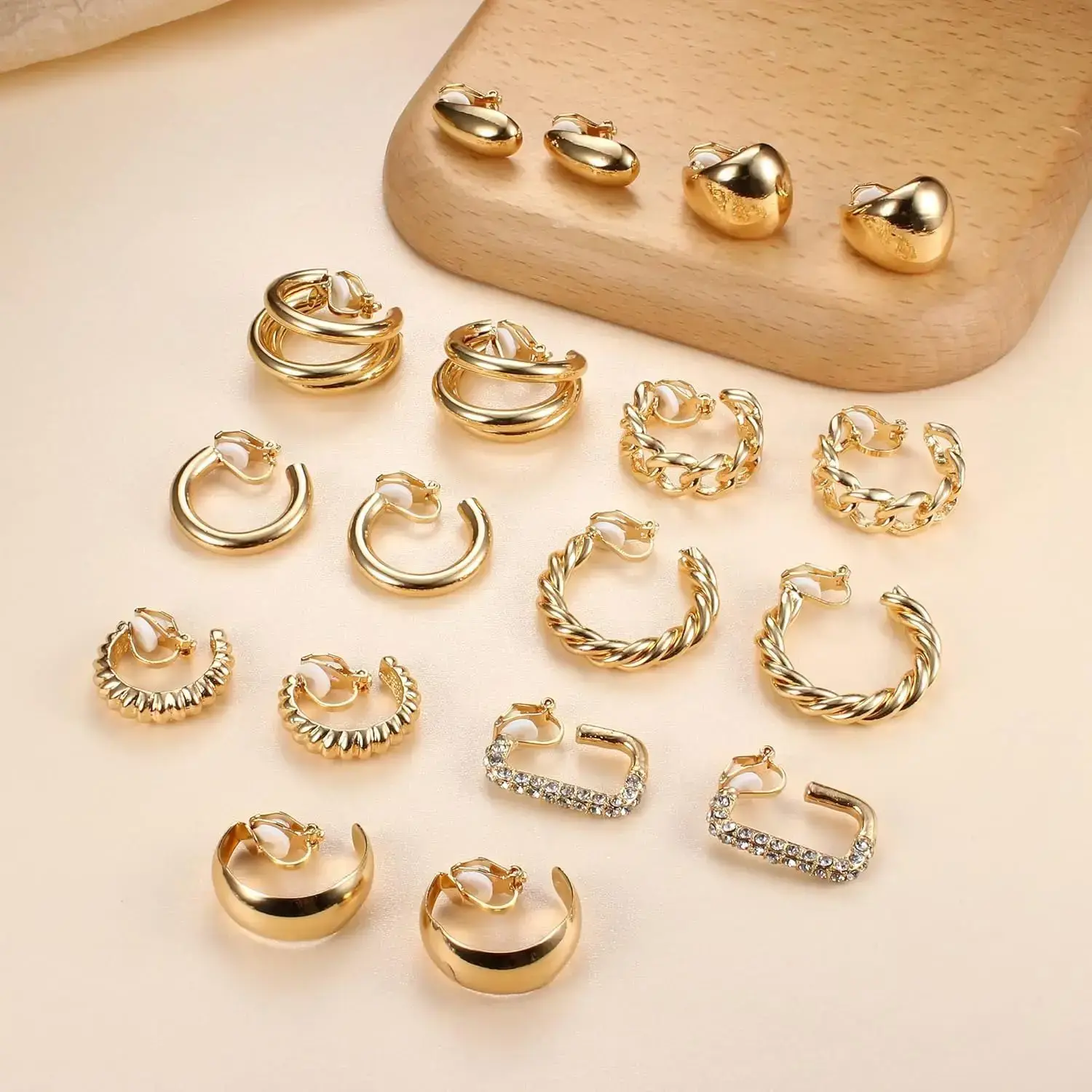 Women's gold clip earrings plated with gold droplets, block clip earrings without perforations, fake earring set