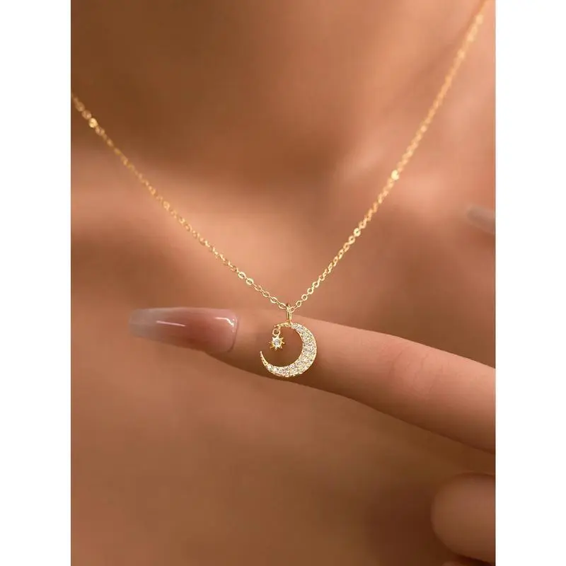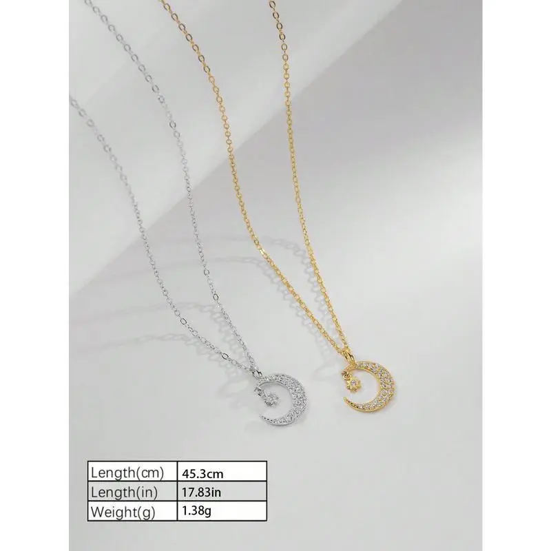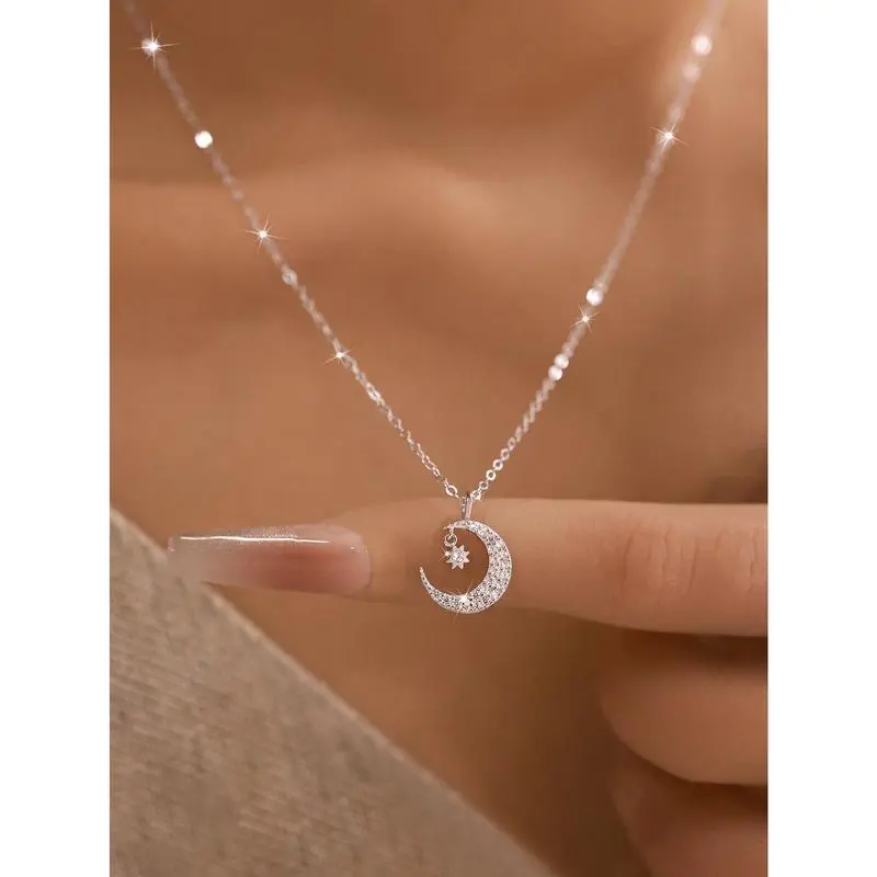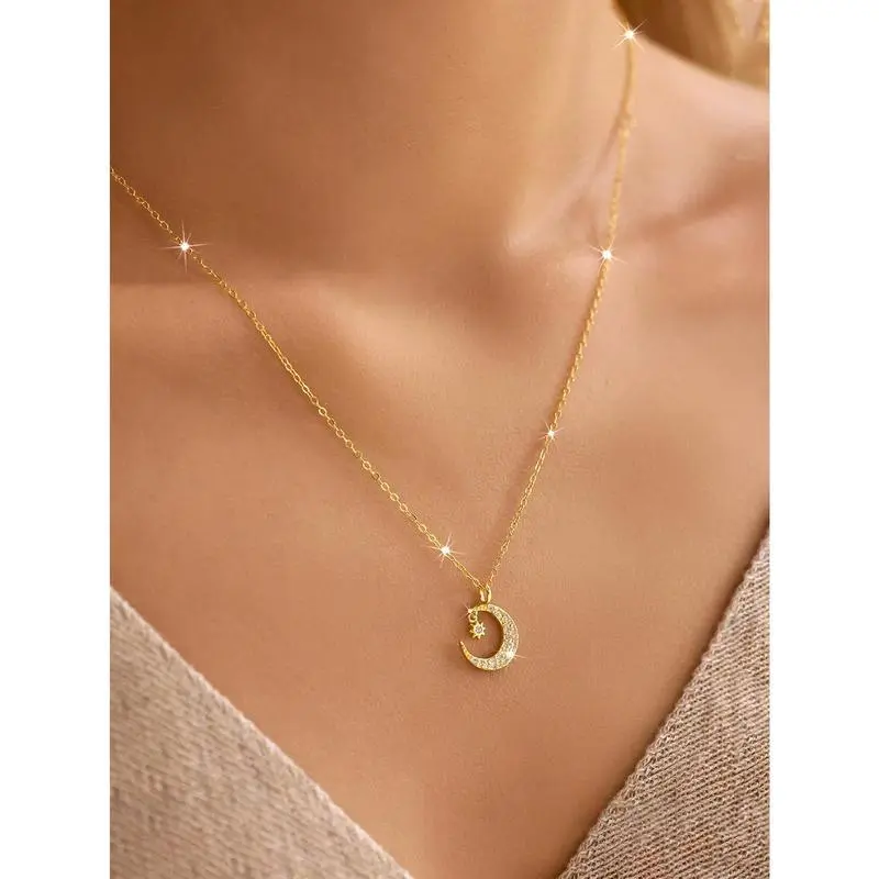 1Pc 925 Sterling Silver Moon & Star Pendant Necklace, Cross Charm Gold Necklace, Suitable For Women's Daily Wear