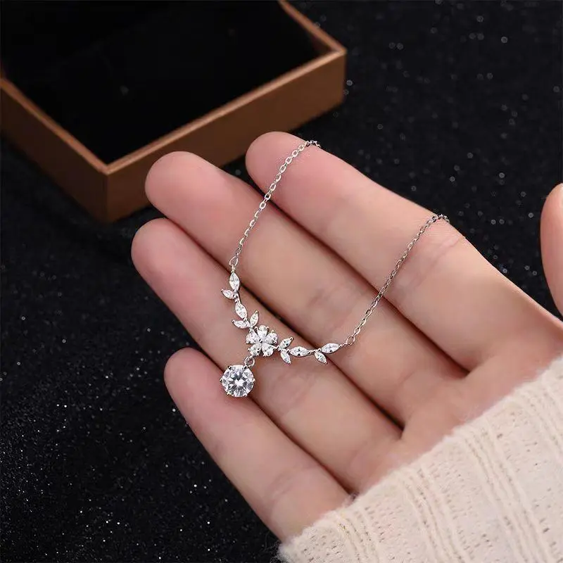 Main Stone: Synthetic Moissanite Cut: Round Brilliant Cut Snowflake Chain Pendant Necklace Birthday, anniversary, engagement gift.