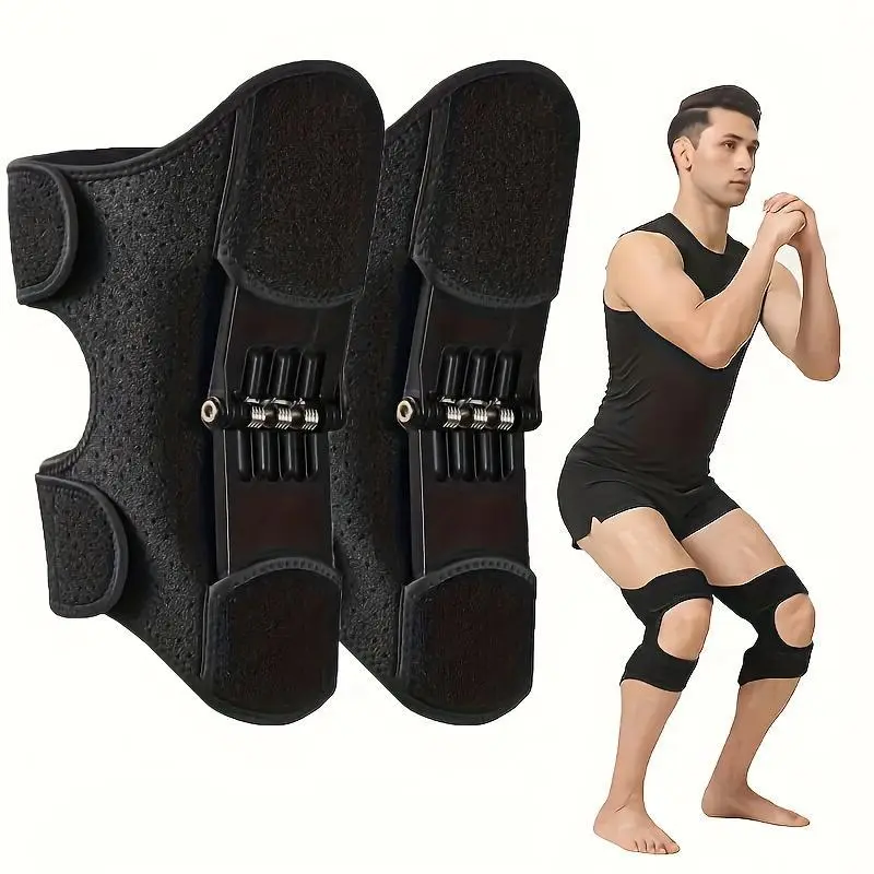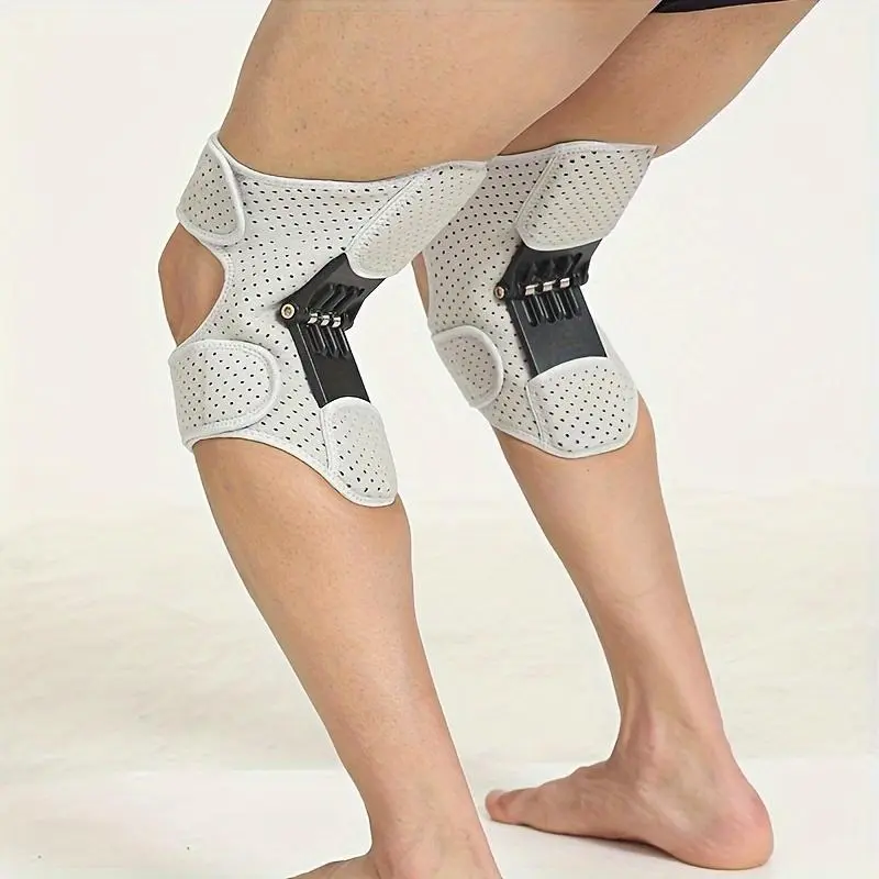 Spring Stable Knee Pads for Weak Legs, Elderly & Cold Weather Sports - Adjustable Pull-On Closure, Breathable Gray/Black Knee Kaps for Squats, Rocks, & Outdoor Activities