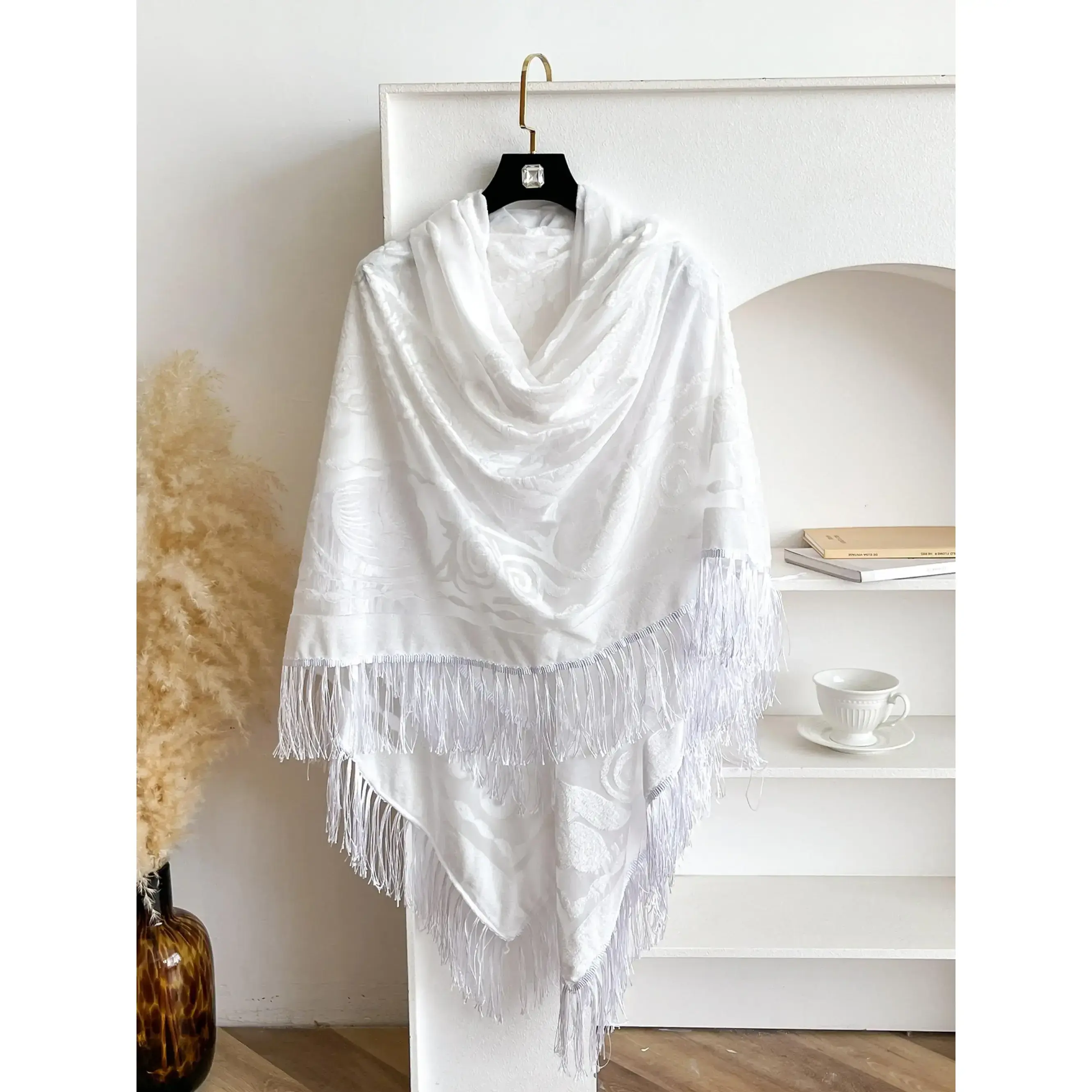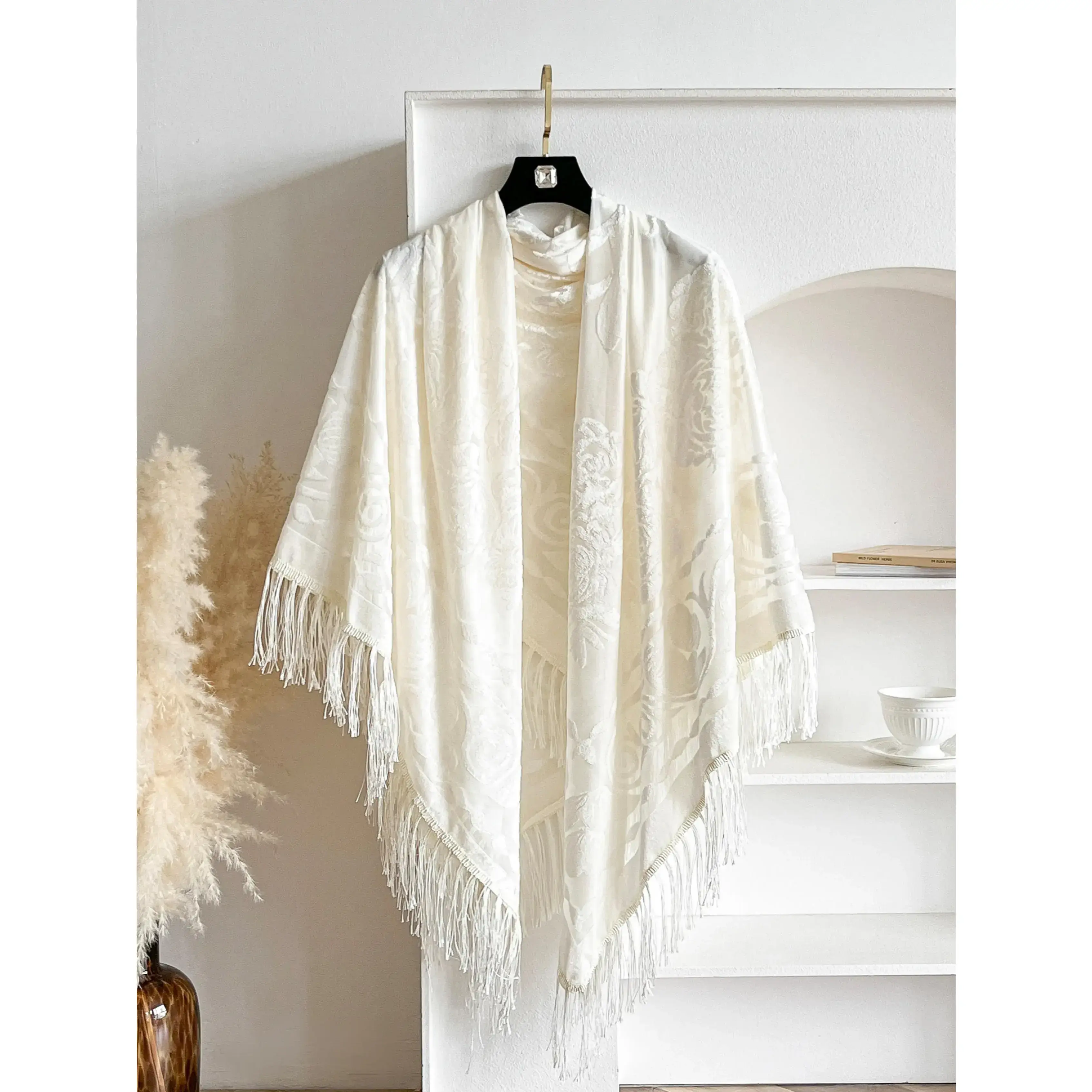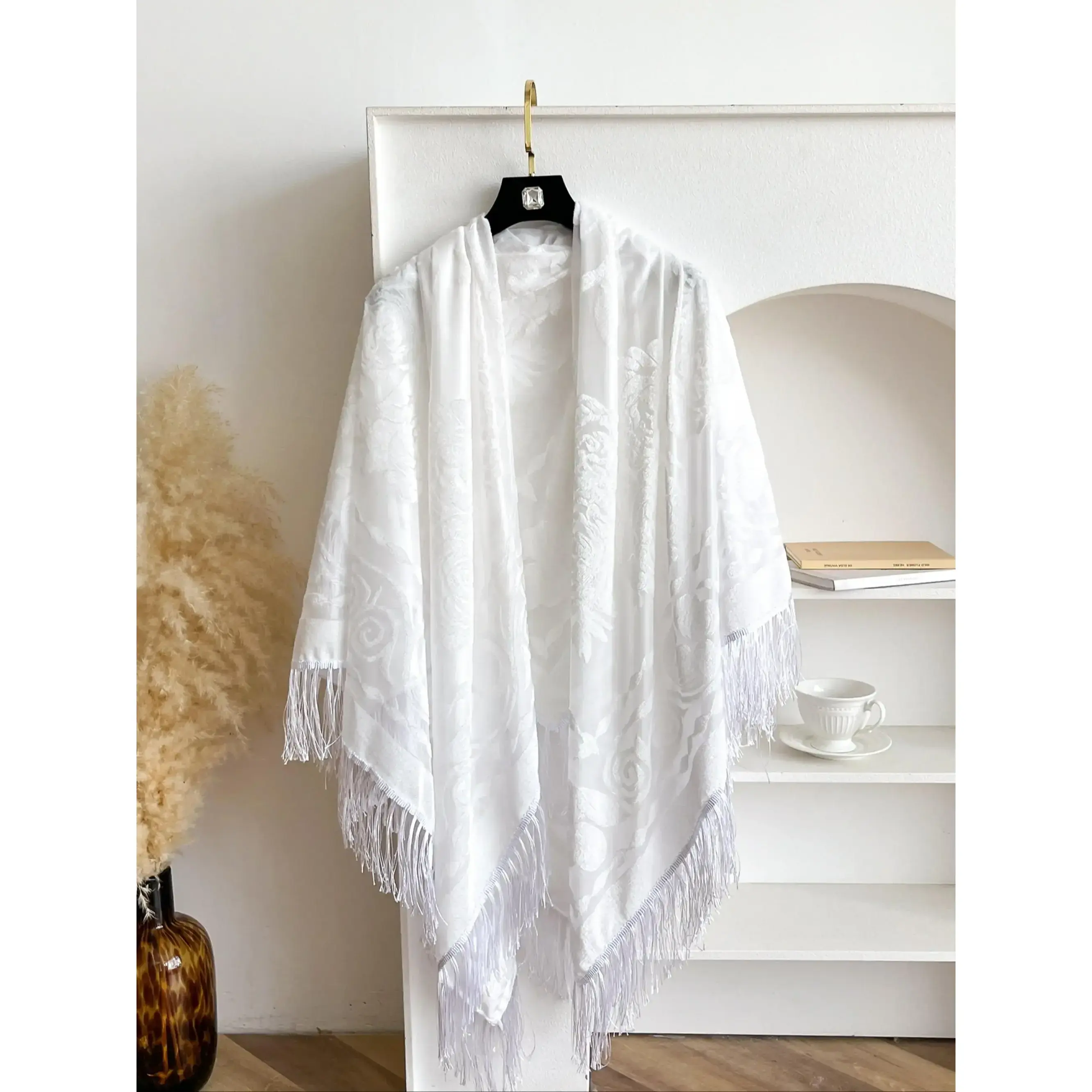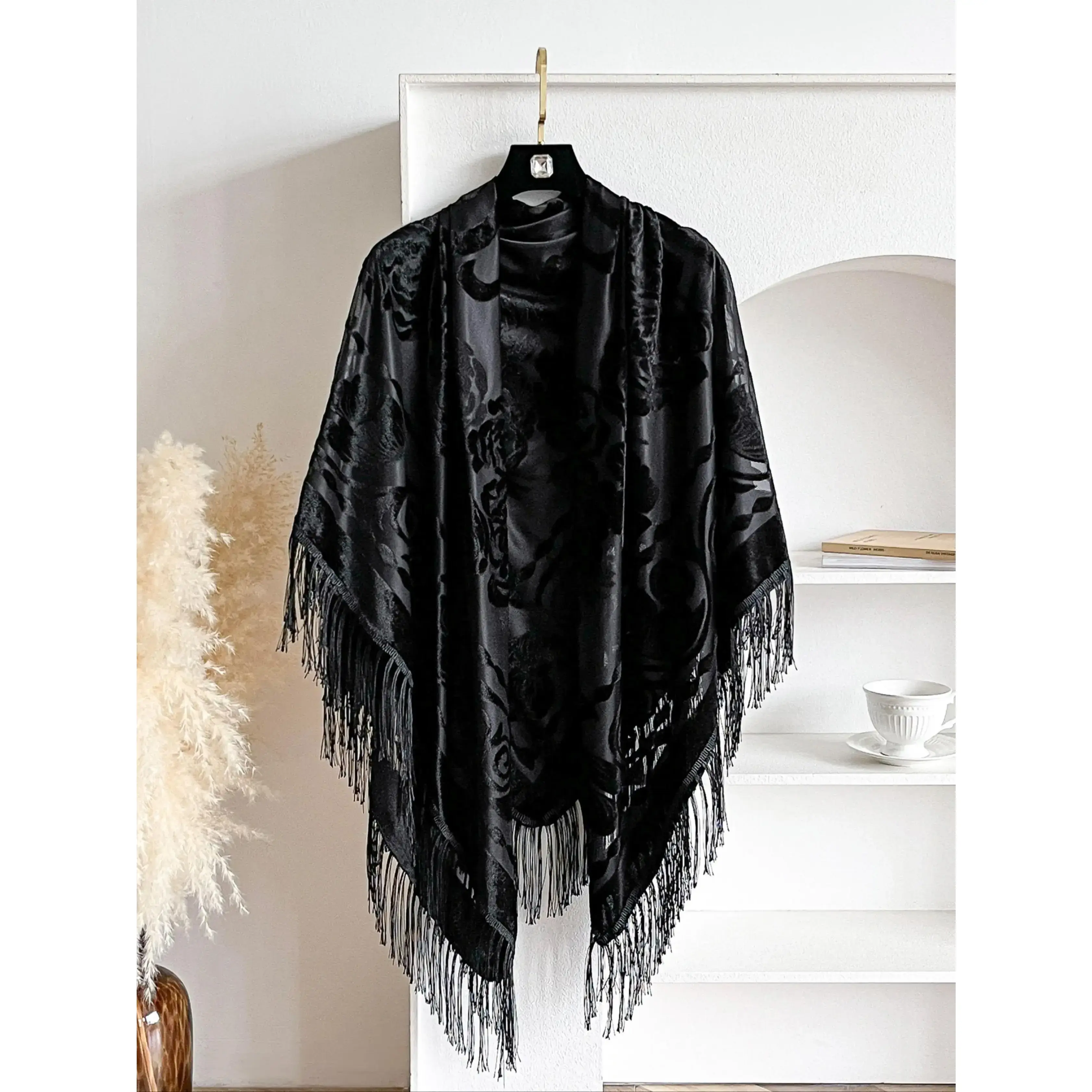 Women's Floral Print Fringe Trim Cape Shawl, Casual Elegant Open Front Shawl for Daily Wear, Fashion Accessories for Women & Girls, Clothes