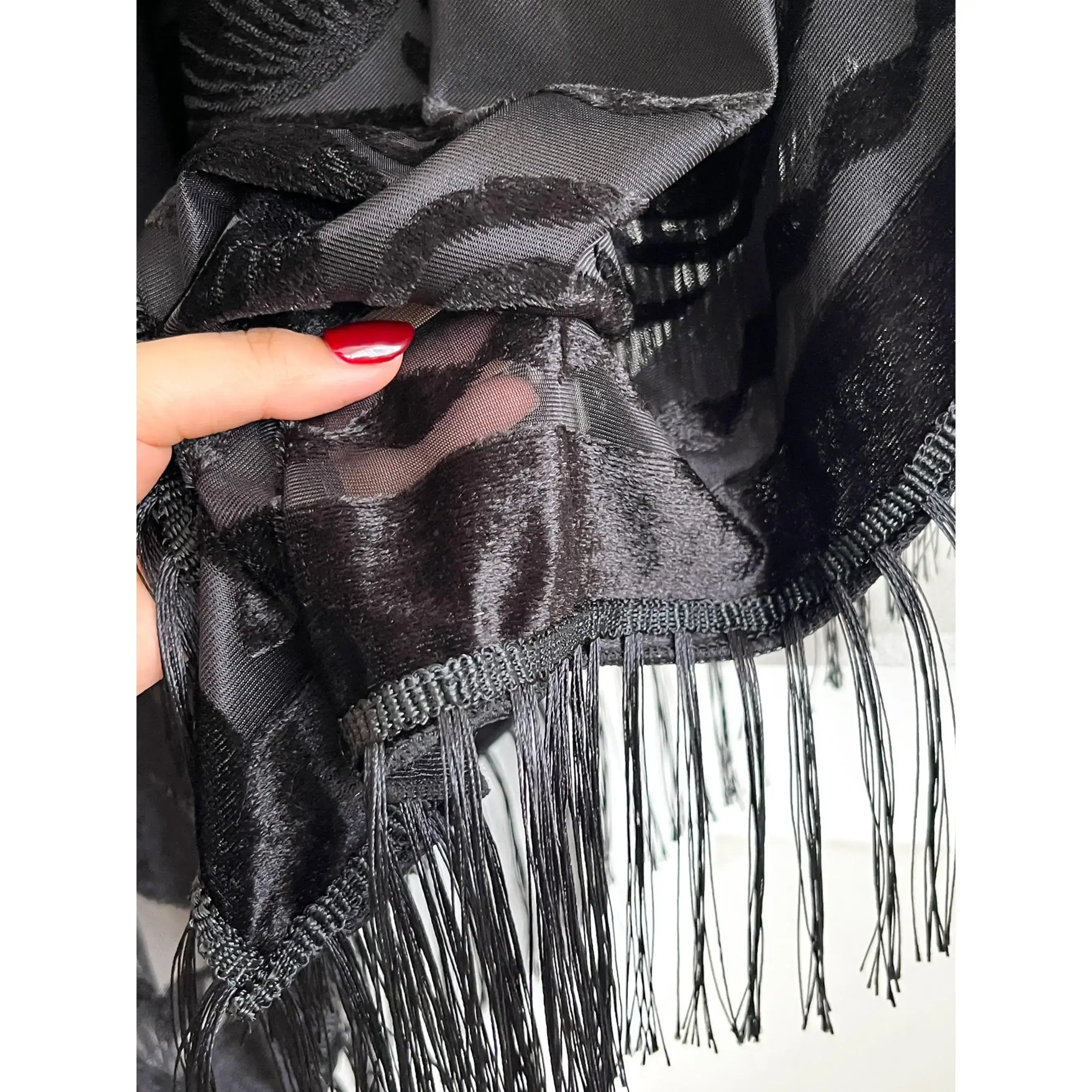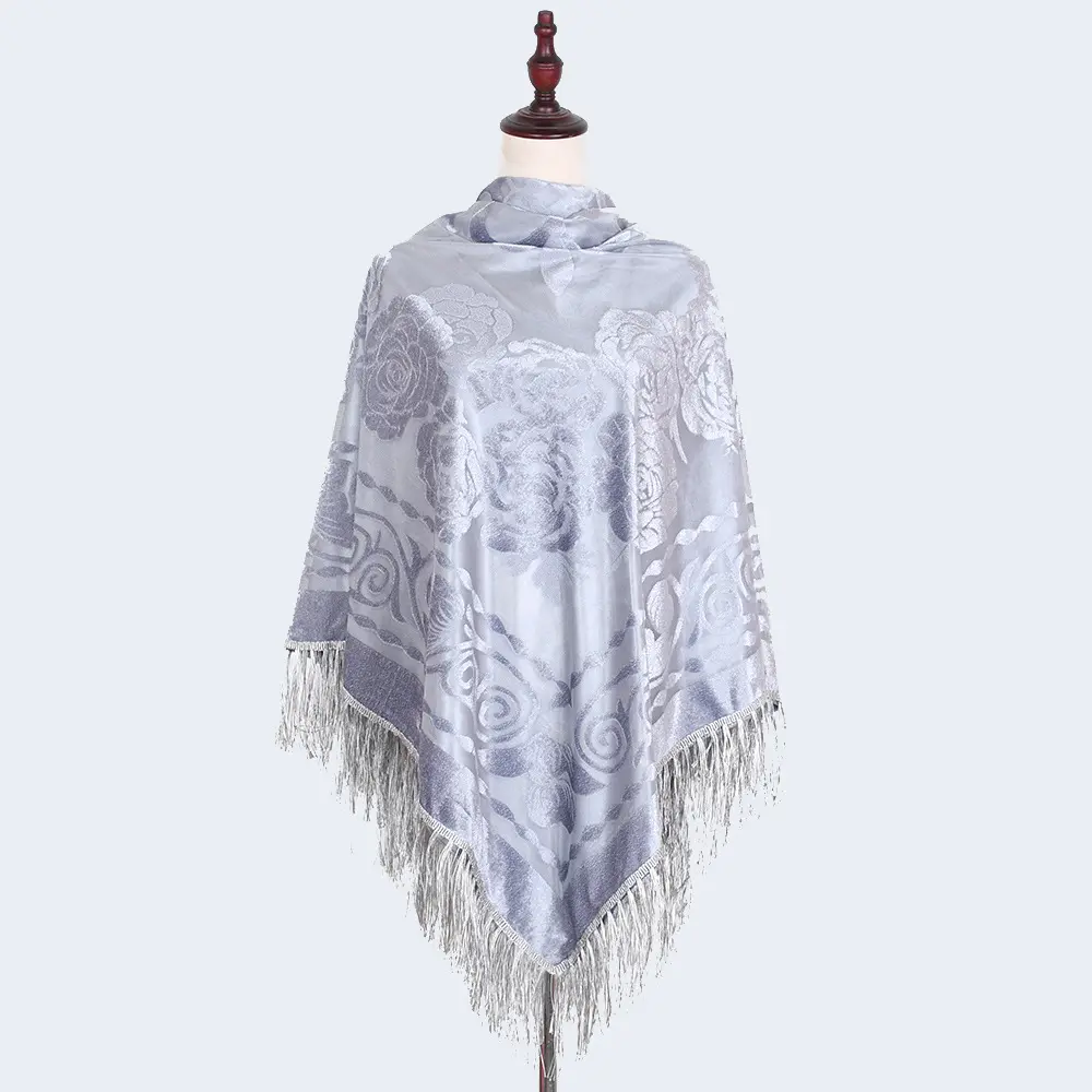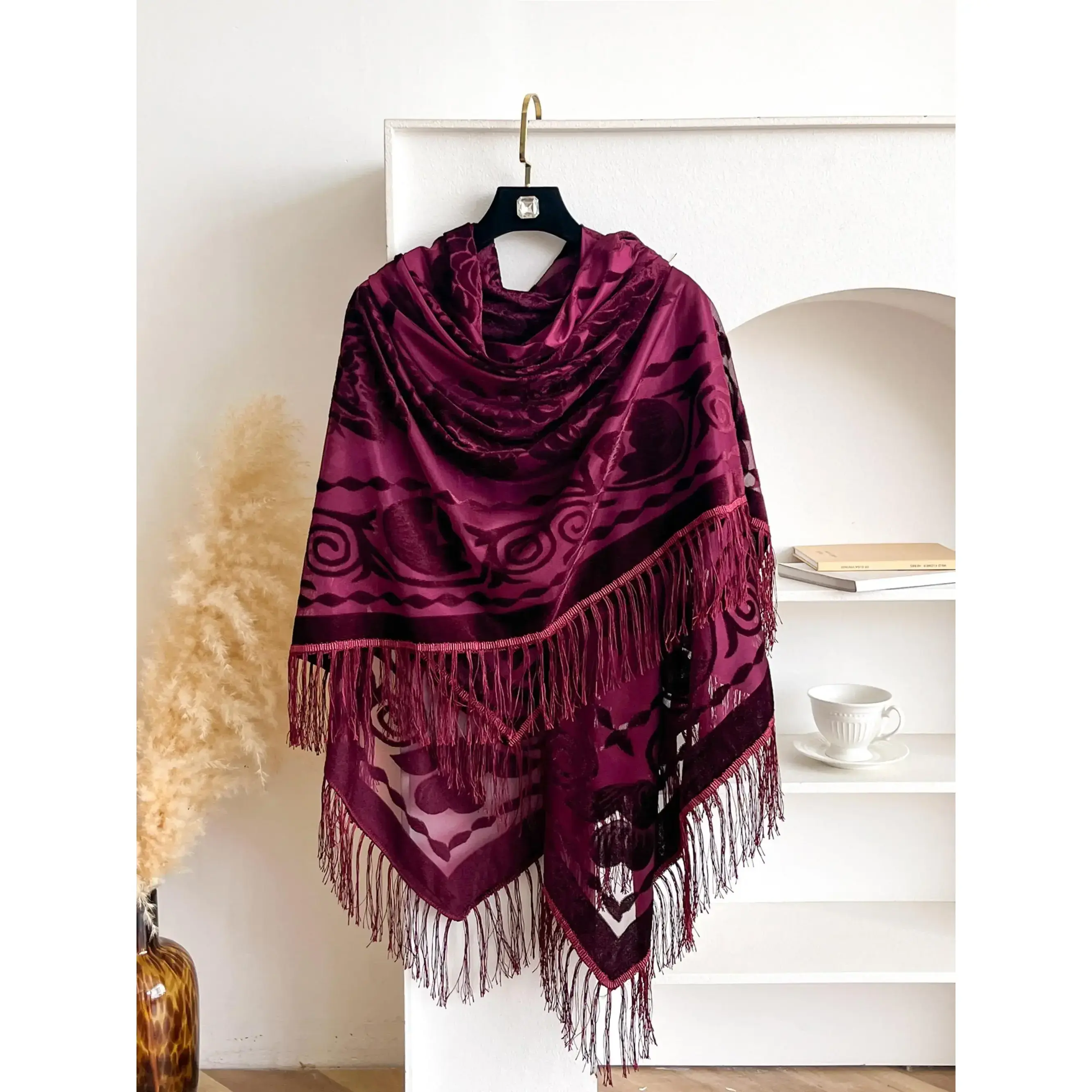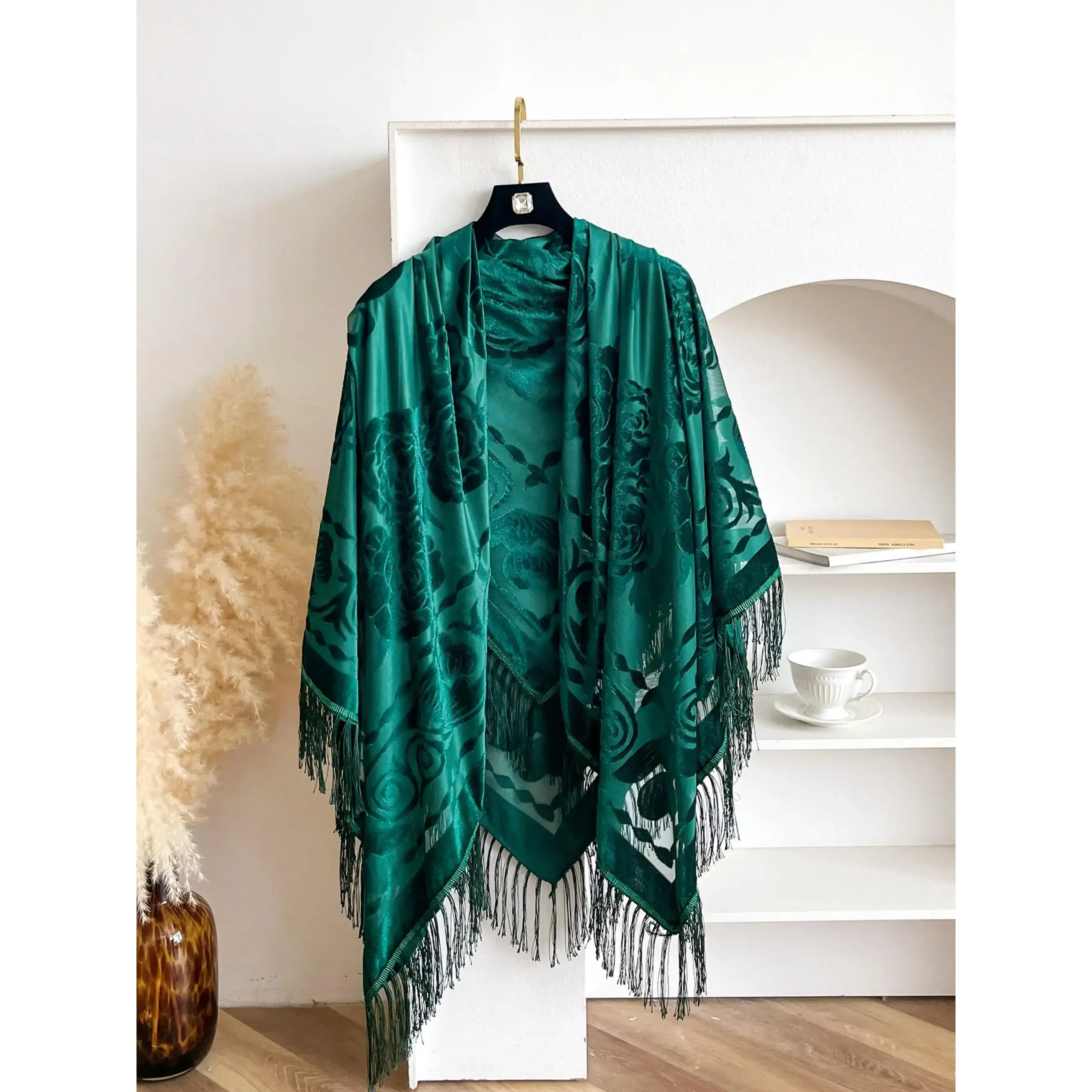 Women's Floral Print Fringe Trim Cape Shawl, Casual Elegant Open Front Shawl for Daily Wear, Fashion Accessories for Women & Girls, Clothes