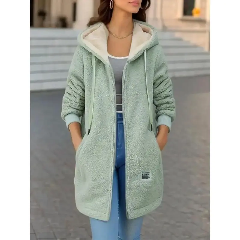 Spring Fluff Coats Khaki Hoodie Long Sleeve Loose Thick Warm Coat Female Spring New Elegant Trendy Casual Ladies Clothes