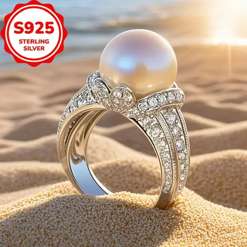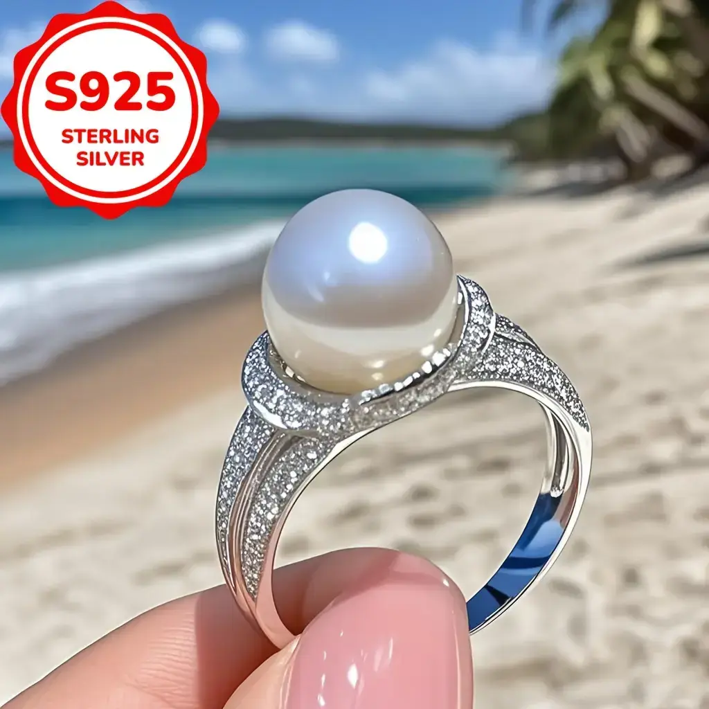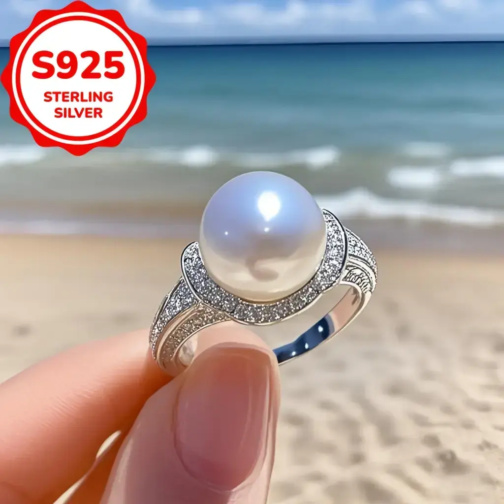 925 Sterling Silver Freshwater Pearl Ring for Women Engagement, Wedding, Date, Banquet, Holiday Party, Anniversary, Birthday, Holiday Gift