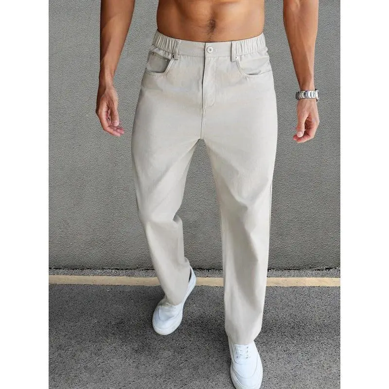 Men'sSolidStraightLegPants,CasualLooseFitComfyFashionComfyPlainTrousersforWorkBusinessDailyMenswear,PantsforMen,Men'sBottomsforAllSeasons,CasualStreetPants,RelaxedTailoredPants,ComfortableFabric,CasualFittedPockets