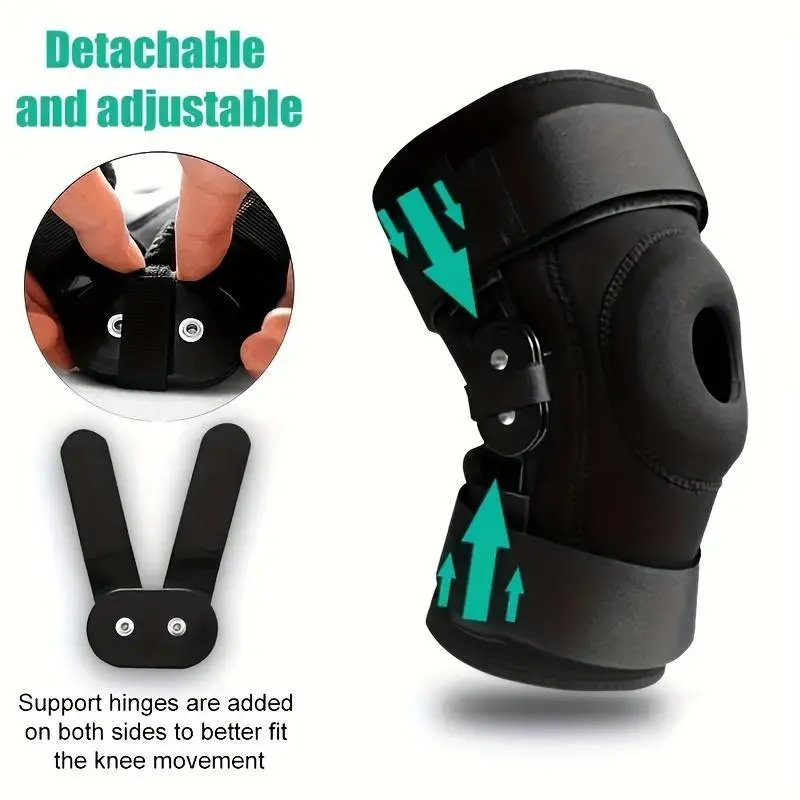 HingedKneeBrace-DoubleadjustableX-Strapstraps,RemovableMetalHinges&Built-inSideStabilizers&KneeJointPatellaFixation-StrongStabilityforUse