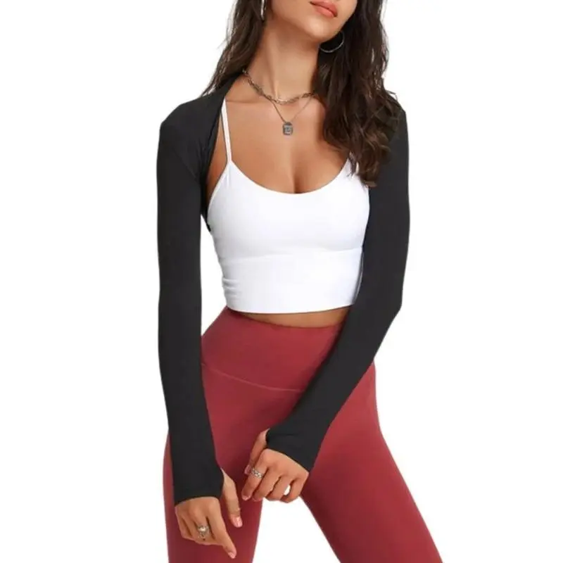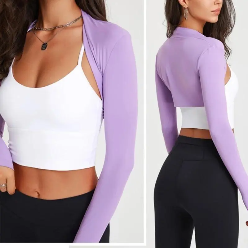 WomensLongSleevesShrugCardiganLadiesOpenFrontCropCardiganAll-matchingSportCropTopsforYogaRunningGym