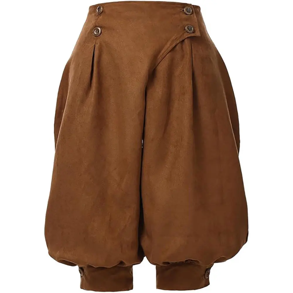 Women��s Pirate Medieval Renaissance Viking Cosplay Pants �C Loose Peasant Castaway Bloomers Trousers Channel historical charm with these versatile pirate-inspired pants, perfect for Renaissance fairs, Viking cosplay, or pirate-themed events.Crafted from lightweight, breathable fabric, the loose-fitting design mimics peasant and castaway styles, featuring a high elastic waistband and billowy legs that taper at the ankles with adjustable ties.The vintage-inspired silhouette flatters all body types, while distressed detailing (optional) adds authentic ruggedness. Ideal for layering or standalone wear, these pants transition seamlessly from medieval maidens to Viking warriors.The durable material withstands active movement, and the elastic waist ensures comfort during long events.Pair with corsets, tunics, or leather vests for complete costumes, or style them with modern tops for bohemian-inspired everyday looks.Available in earthy tones like brown, beige, or black, they capture the essence of historical attire. Perfect for cosplayers and festival-goers, these pants blend medieval authenticity with modern comfort.Embrace a versatile costume essential that suits pirate, Viking, or peasant roles-loose, adjustable, and ready to bring Renaissance drama to any event! -Package : 1pc pants -Material: Polyester (microsuede),thin and soft -Suitable for Women -Hand wash or machine wash -For Female vintage punk style dress-up, good for renn faire, Retro Style Bloomers Mid-length Trousers for adult women, for Halloween, Carnival Party and Performance.