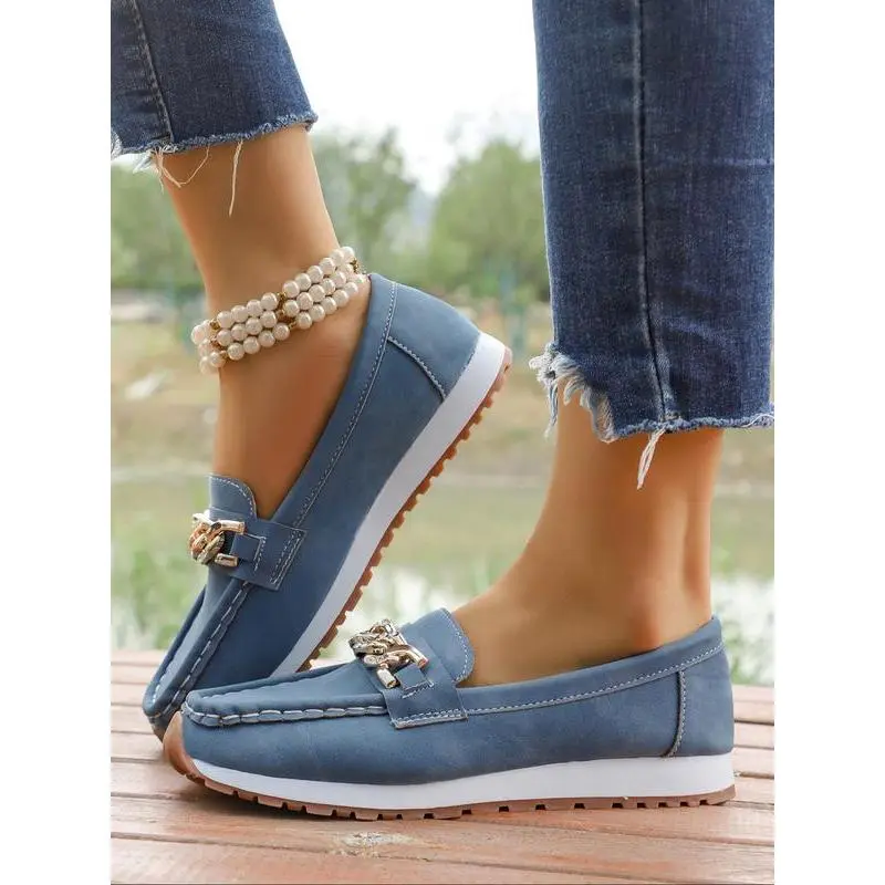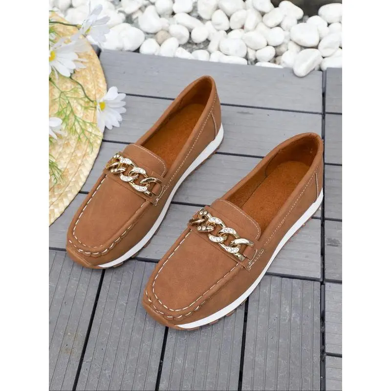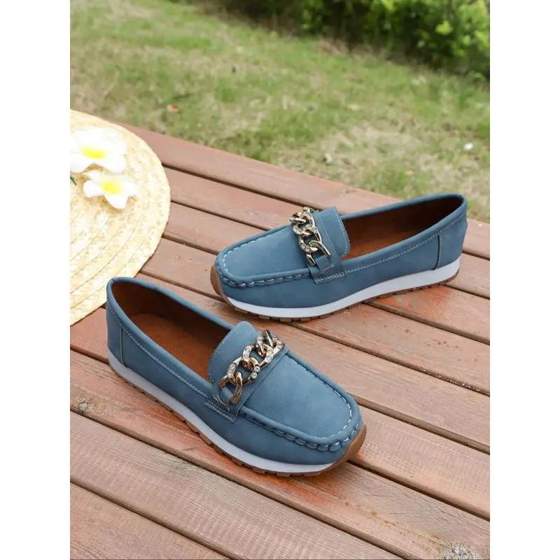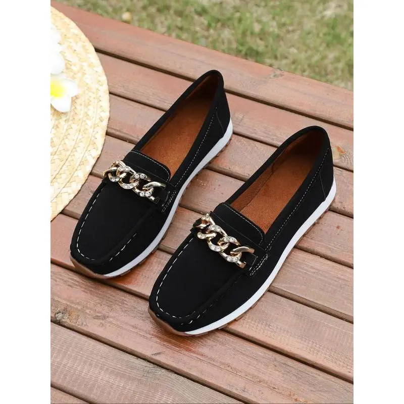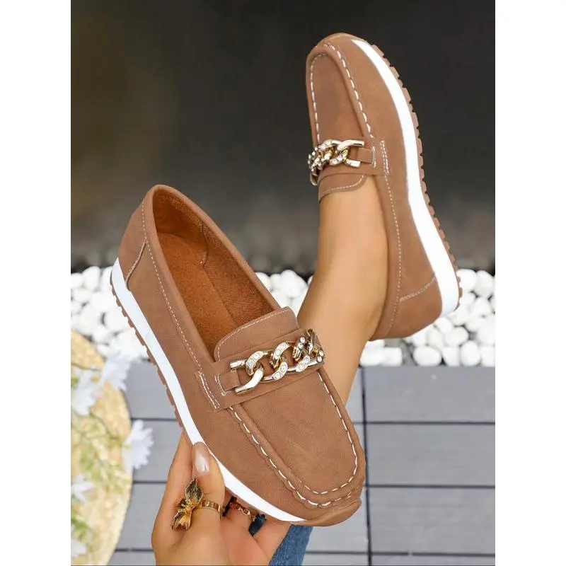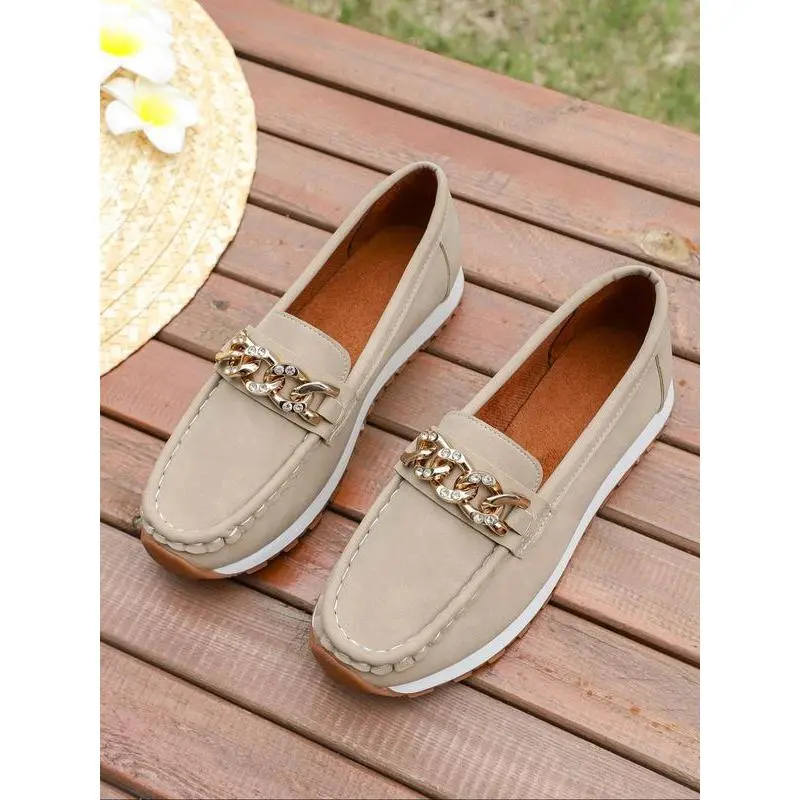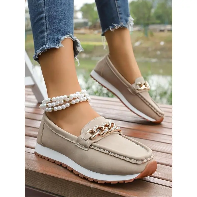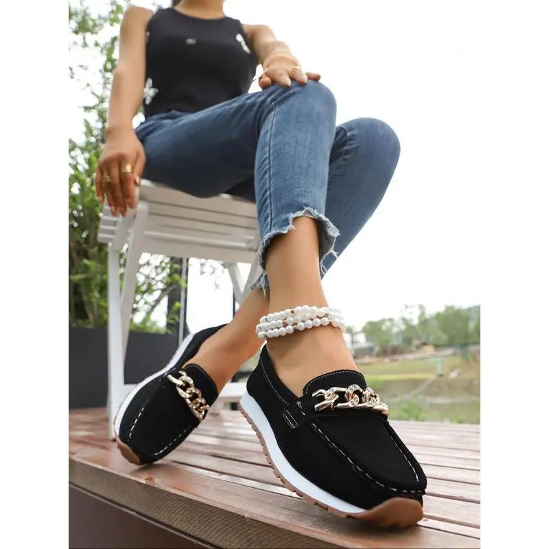 ��Seamless Slip-On��: Experience the ease of wear with our no-lace design that allows quick on-and-off functionality. ��Chic Chain Accent��: The eye-catching chain detail adds a unique twist, enhancing the overall appeal of this footwear. ��All-Season Use��: Designed for every season, these shoes suit a wide variety of outfits and occasions, ensuring year-round wear. ��Elevated Heel��: Featuring a slight wedge heel, this shoe offers a subtle lift, balancing height and natural movement. ��Quality Materials��: Crafted from smooth leather for a refined look, paired with a rubber sole for durability and traction.