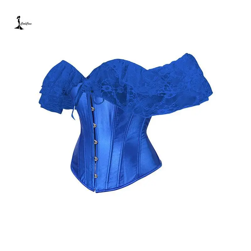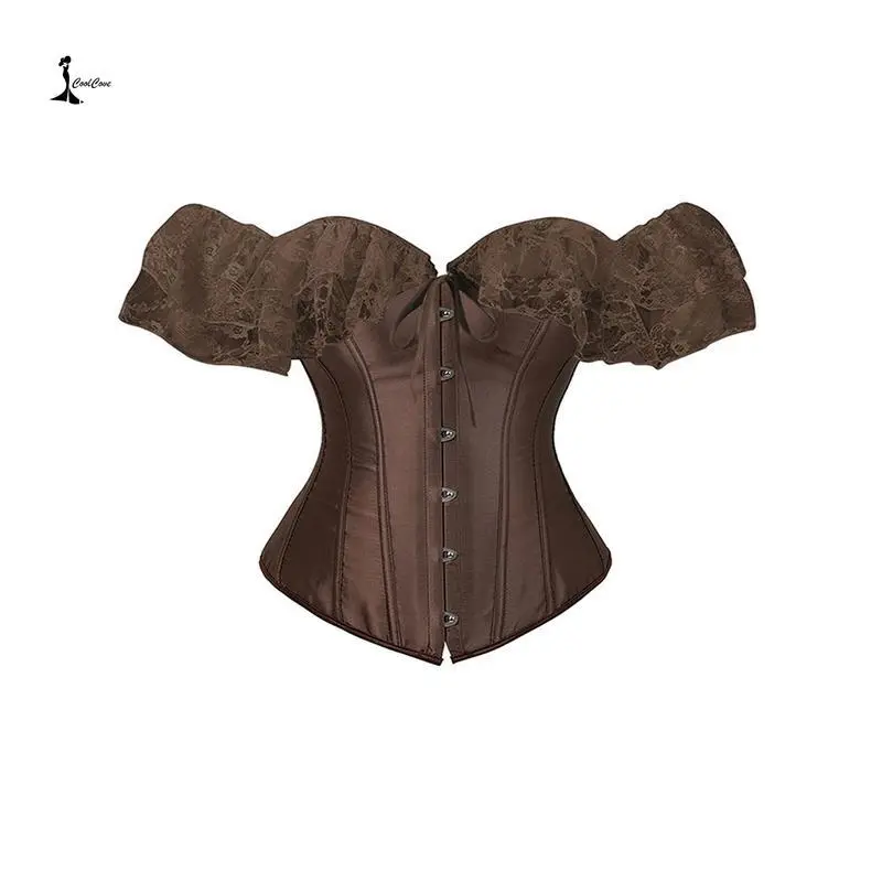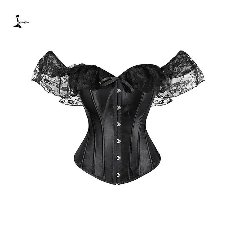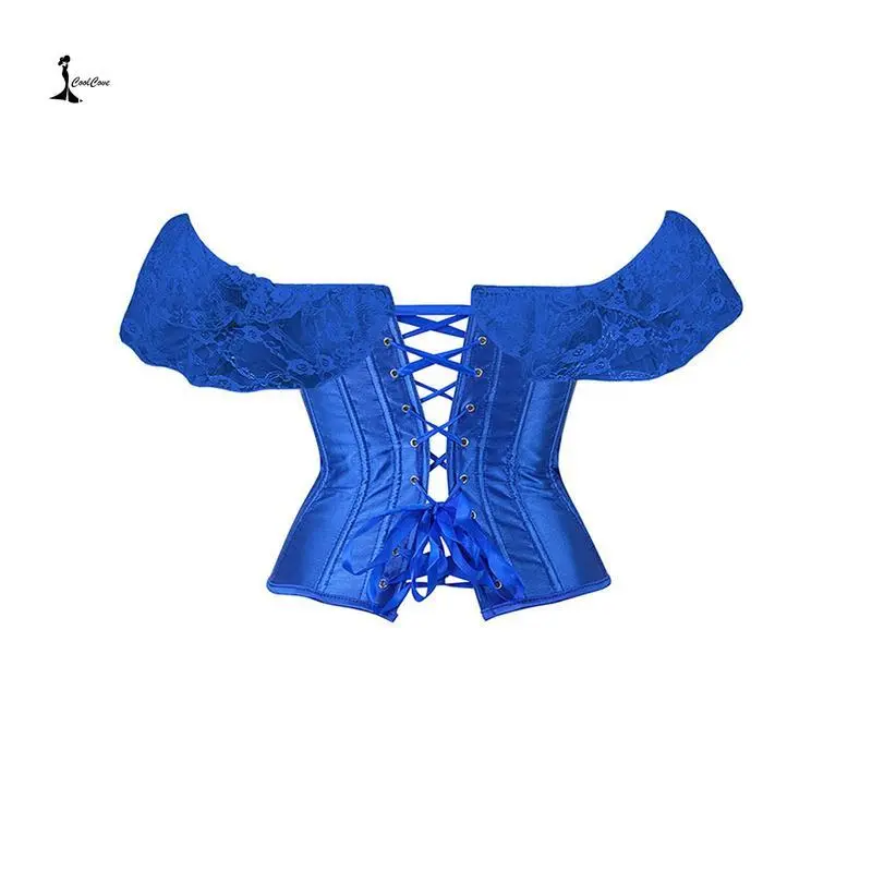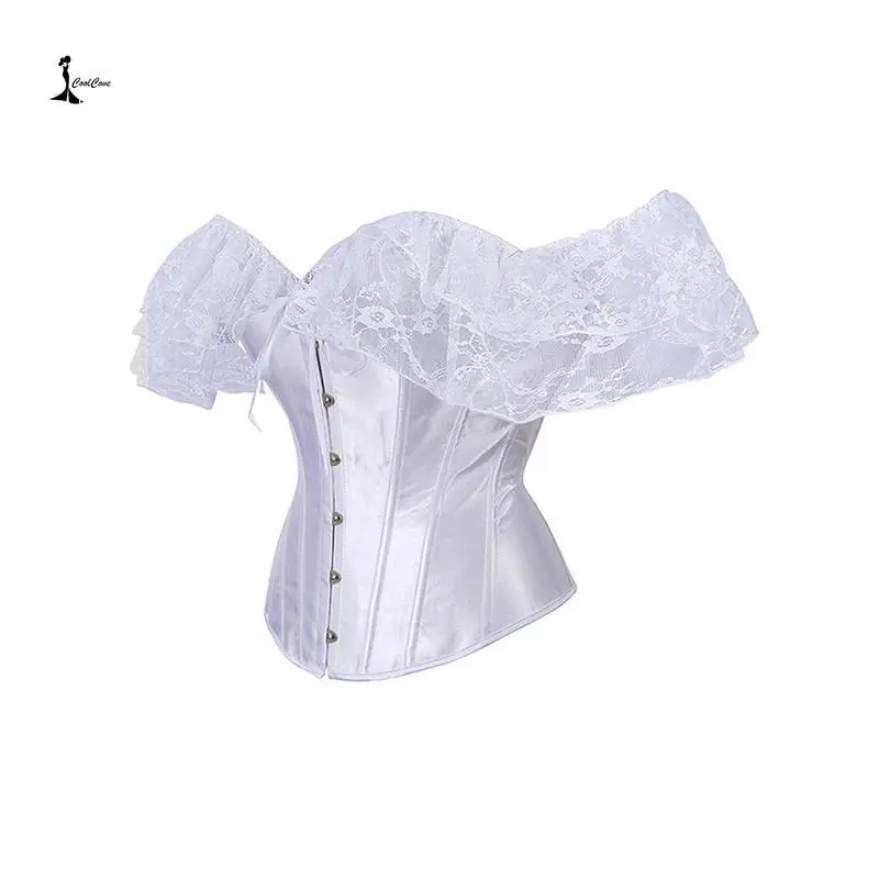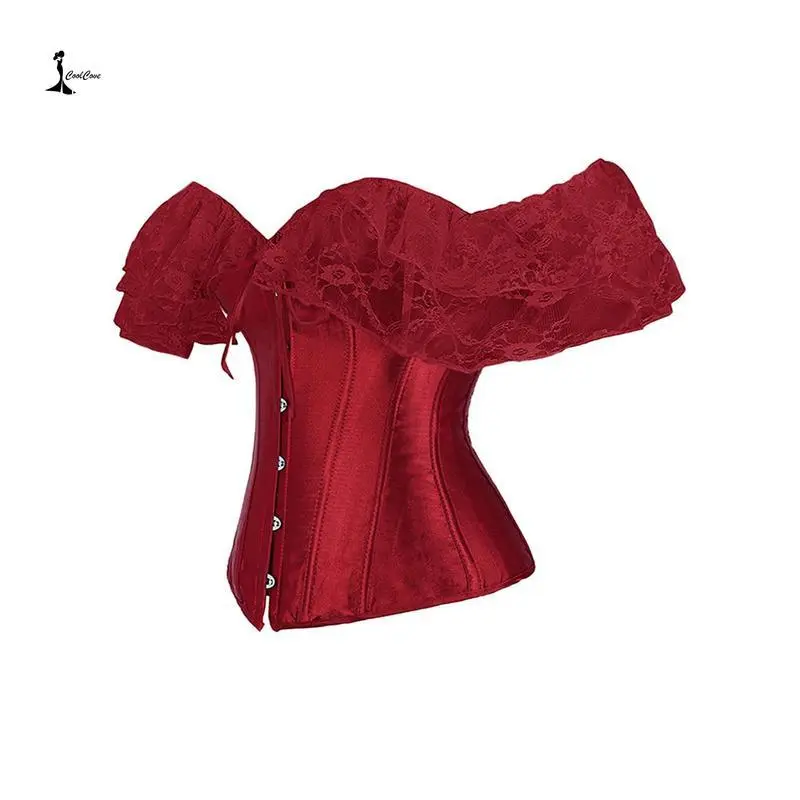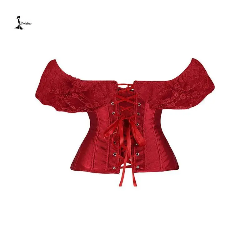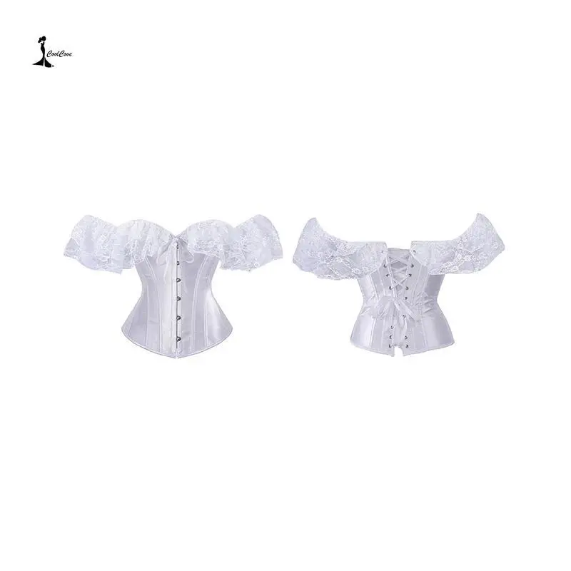 Women'sBonedCorsetBoatNeckShortSleeveOffShoulderLaceOverbustBodyShaperBowTieCourtStyleFashionTops