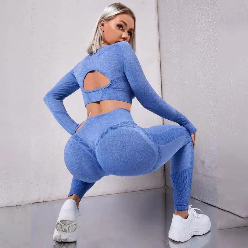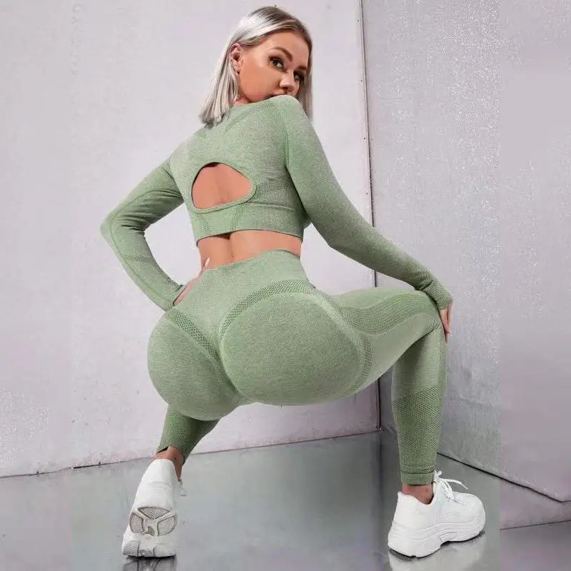 2025NewSeamlessHighWaistPeachHipTightElasticYogaClothesSuitRunningFitnessTwo-PieceSetforWomen