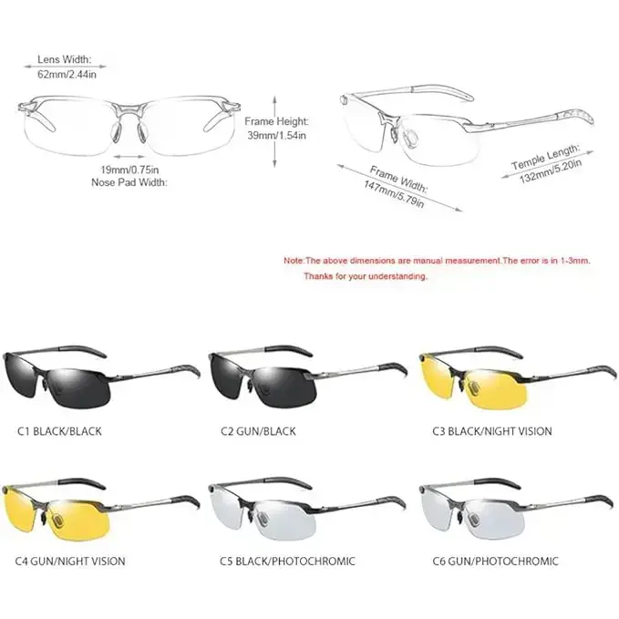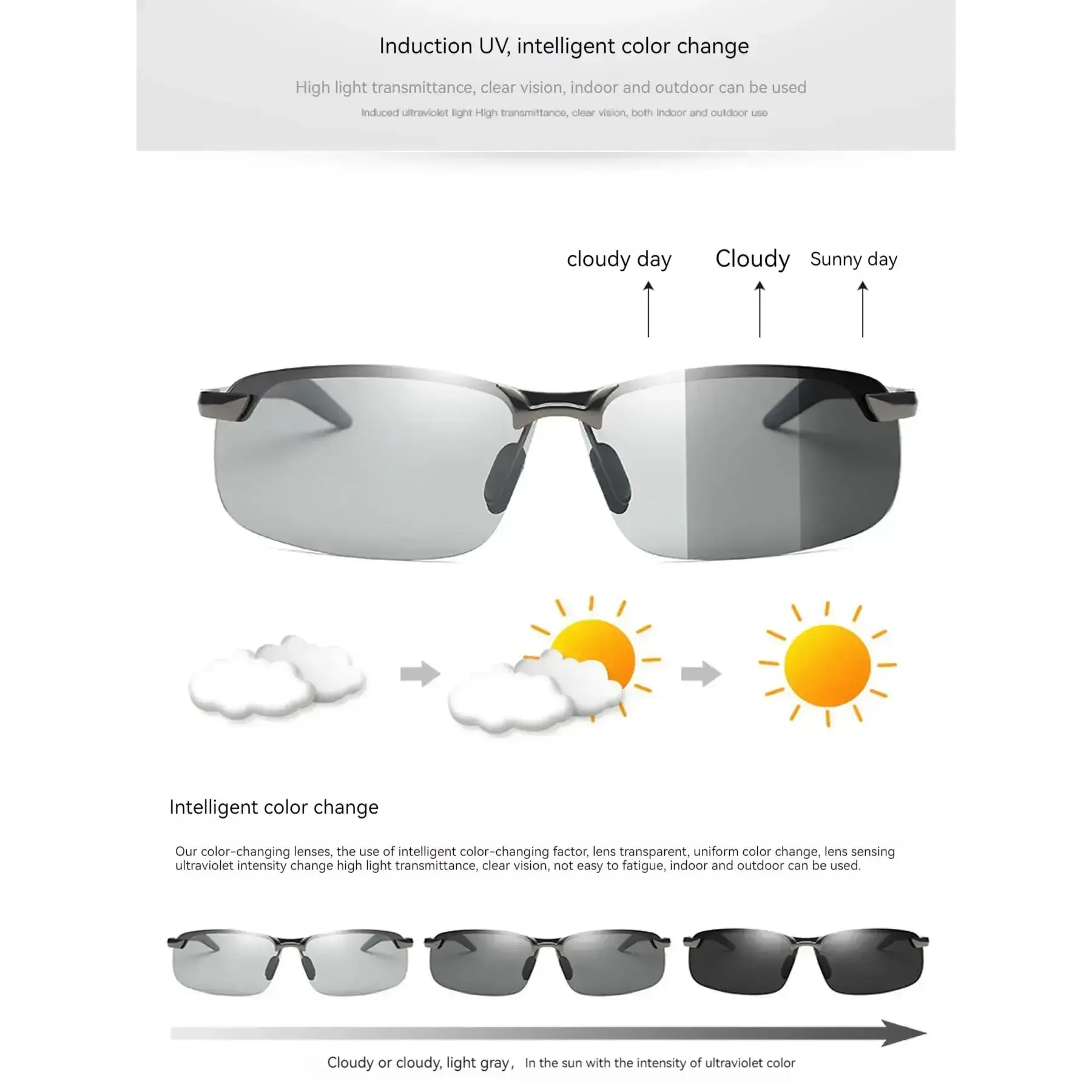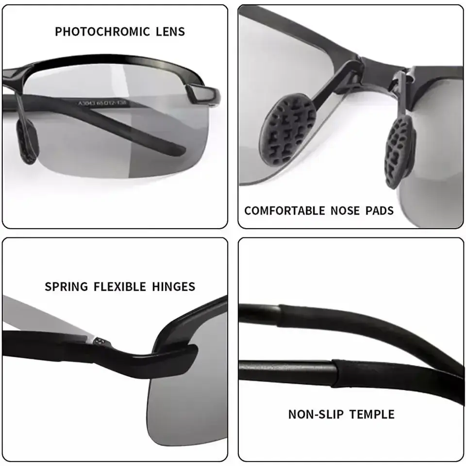 Experience ultimate protection and comfort with these anti-UV riding glasses. Featuring photochromic lenses that adjust to changing light conditions, polarized technology for glare reduction, and a lightweight, durable frame for all-day wear. Ideal for outdoor activities and everyday use, they offer unmatched clarity and comfort for your eyes.